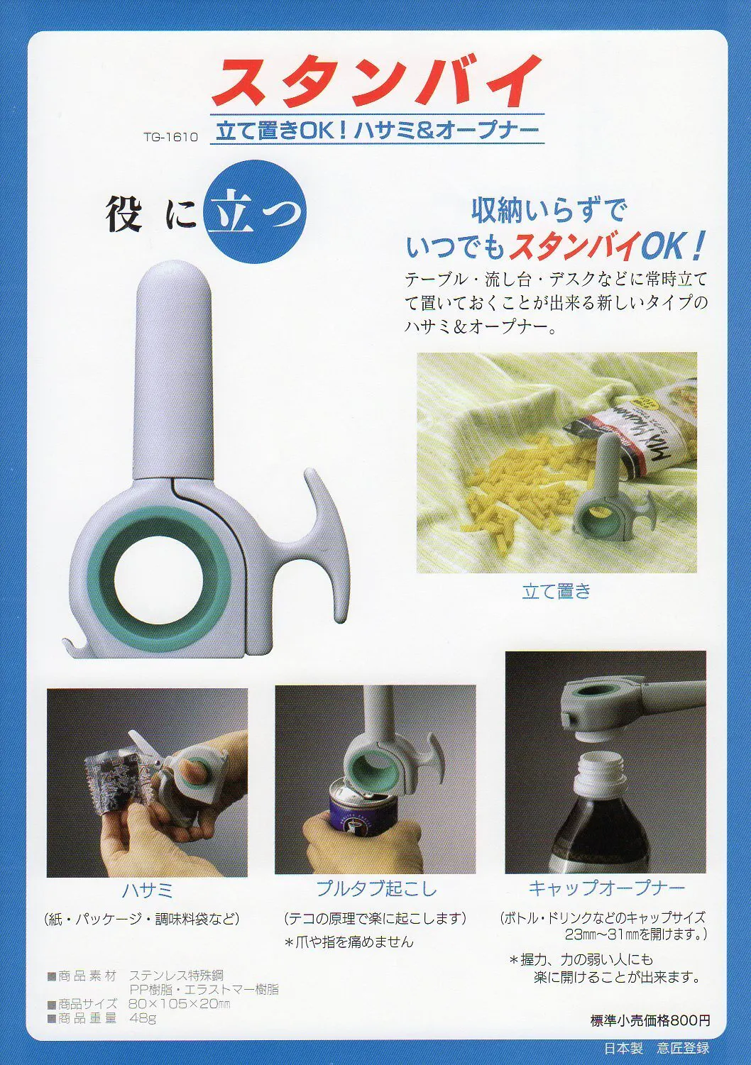 特に手指の力が弱まっている年代の方には「楽」「スタンバイ」共に、大変便利で喜ばれることと思います。