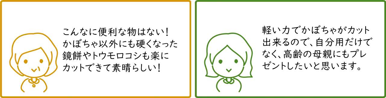 ご自身で使うのは勿論、ご両親や硬いものを切るのに苦労されている方へのプレゼントにも最適です!