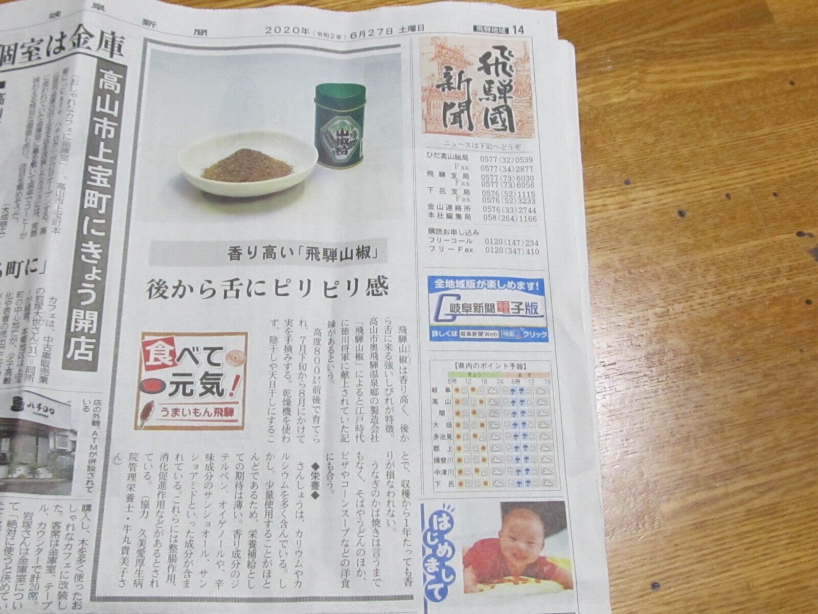 岐阜新聞に弊社「山椒粉」を掲載していただきました。