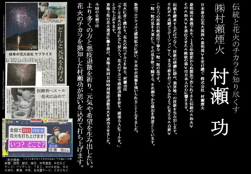 日本の花火という文化の保護と、早期収束を祈るためプロジェクトを立ち上げました。