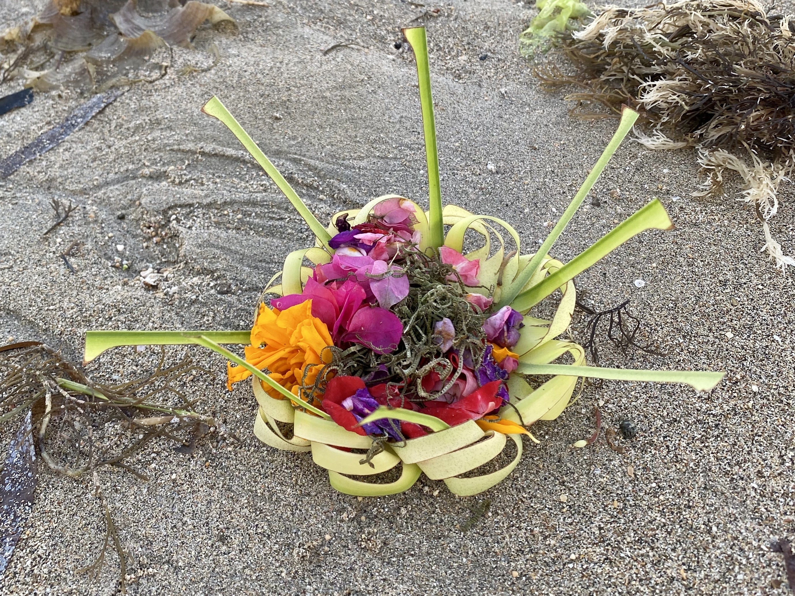 サヌールの海辺に置かれていたお供物のチャナンの写真