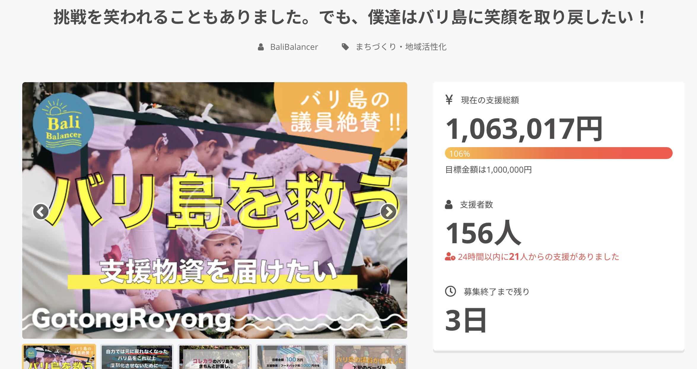 今多くの人がバリで職を失った現状を知ってクラウドファウンディングを立ち上げました。