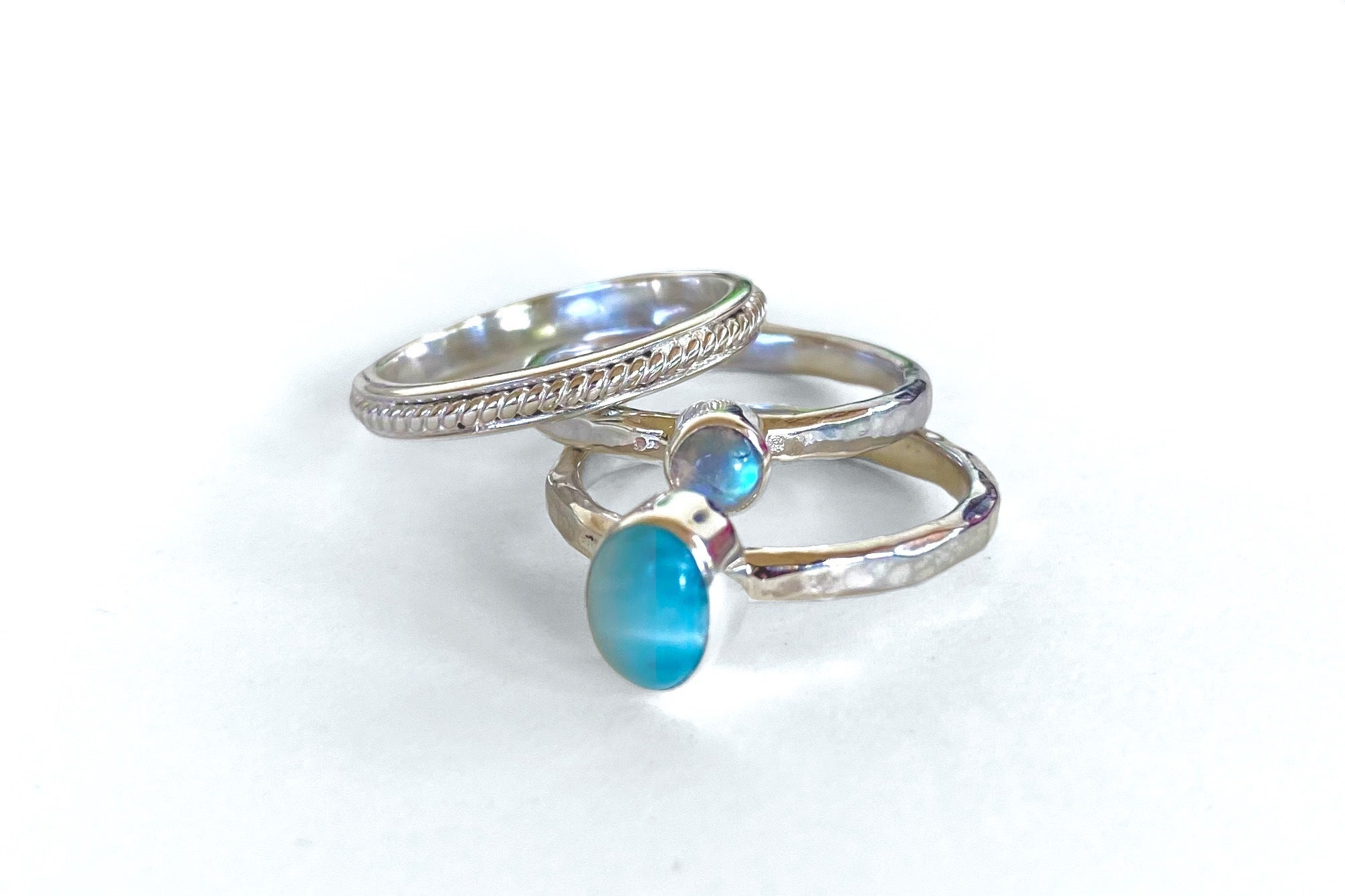 ラリマー、ムーンストーン、と地金のみの指輪のセットです。