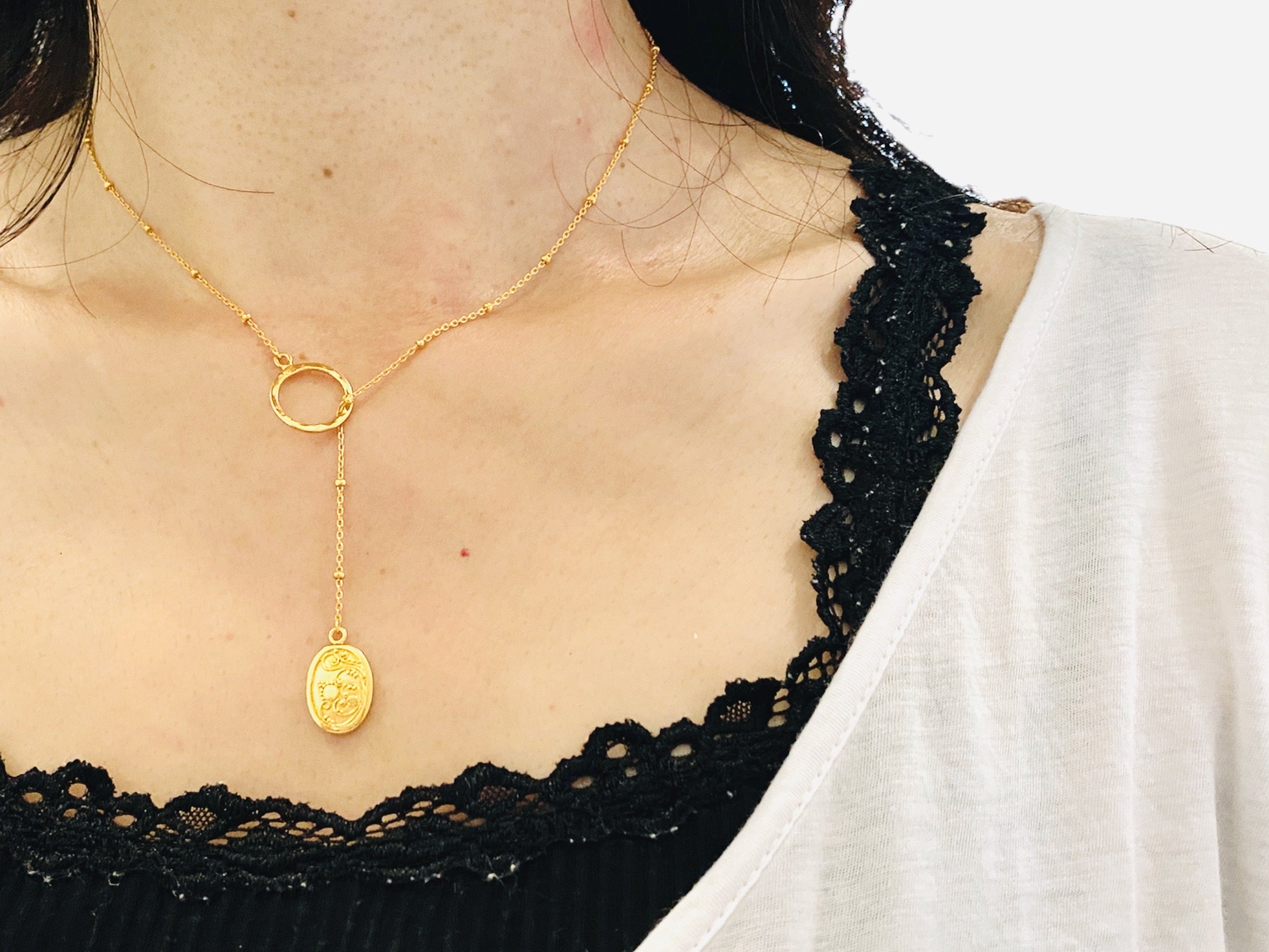 まずこちらのネックレスがロータスをモチーフとしたラリエットタイプのネックレスです。