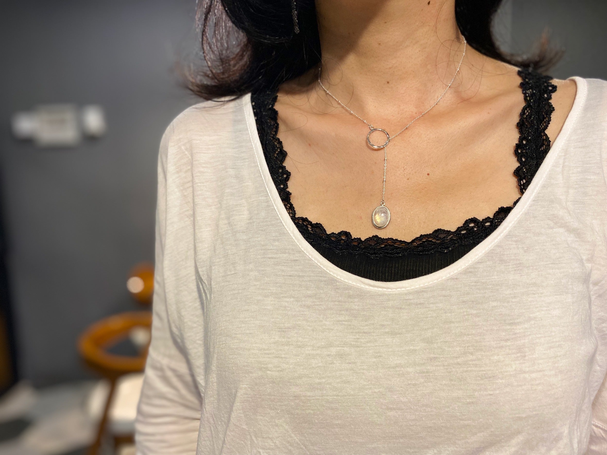 ほんのり虹色に光るムーンストーンがとても素敵なネックレスです。