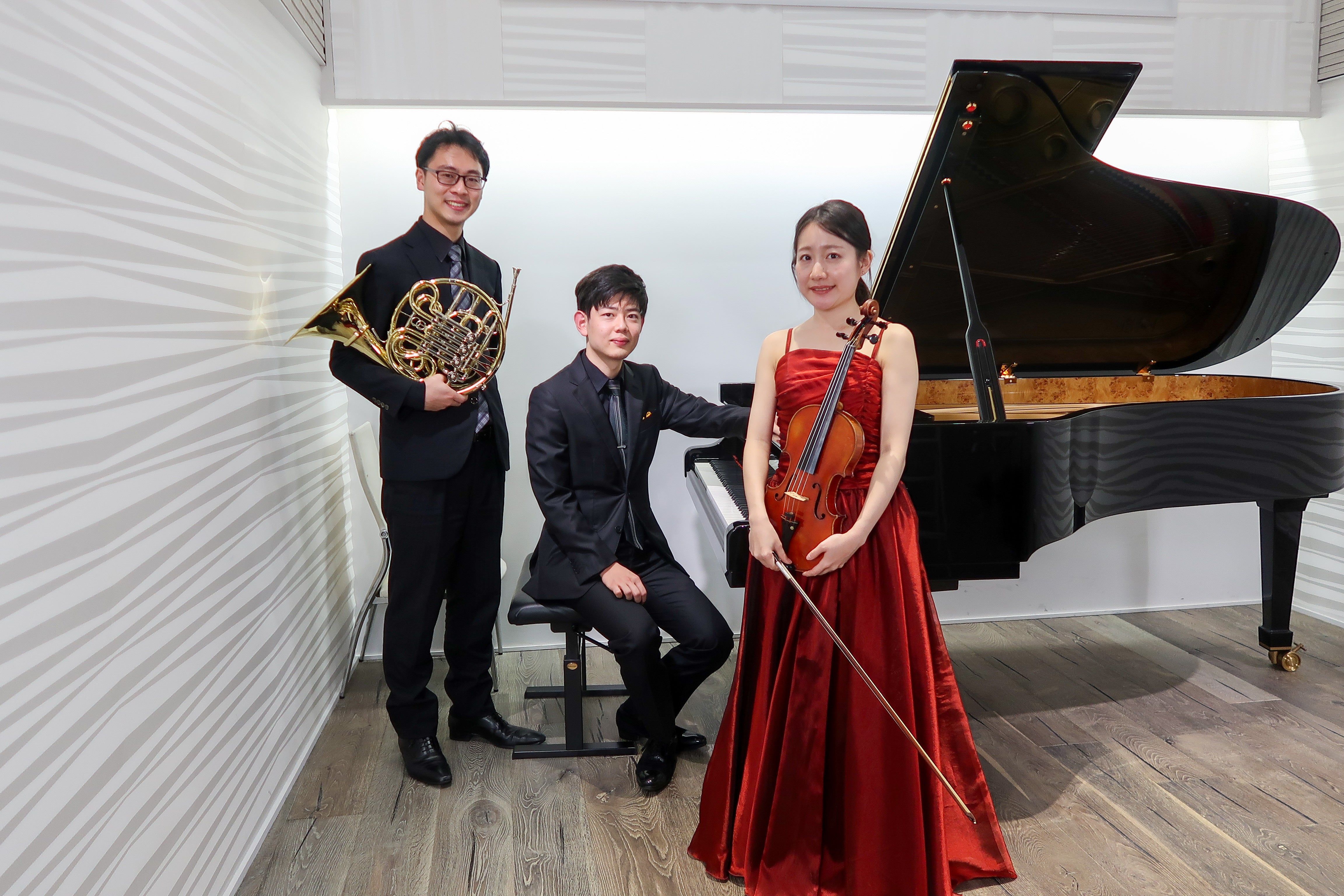 VIRTUOSO VIOLINSのクラシック音楽界に光をPROJECT動画撮影、収録は予定通り進んでおります。今日の撮影はヴァイオリン、ホルン、ピアノのトリオです。このような楽器の編成はあまり聴くことはないと思いますので、是非、この機会に皆様に知っていただきたいと願っております。ブラームス: ホルン三重奏曲 変ホ長調 作品 40をメインに、各個人のソロ演奏を合わせたプログラムとなっております。<ピアノ・ソロ>J. S. バッハ: トッカータ ハ短調 作品 911<ホルン・ソロ>E. ボザ: 森にて<ヴァイオリン・ソロ>P. サラサーテ: カルメン幻想曲 作品 25音楽とは楽しむものである。その原点を感じさせてくれる個性漲る三人のコラボレーション。【ホルントリオとしての歩み】2017年、出身も大学も楽器も異なる3人が京都で出会い、意気投合。ホルントリオの代名詞として名高いブラームスのホルントリオに挑戦すべく活動を開始する。これまでに東京・大阪・名古屋にてトリオとして演奏会に出演。いずれの公演も広い年代からの注目を集める。現在、1人はフリーランスとして、1人はオーケストラで、1人は海外で、それぞれ一層意欲的に活動しながらも、定期的にトリオとしての活動を継続している。【ヴァイオリン: 柳楽毬乃】Marino Nagira島根県出身。6歳よりヴァイオリンを始める。 京都市立芸術大学を経て、同大学院音楽研究科修士課程器楽専攻(弦楽)を首席で修了。 第8回松江プラバ音楽コンクール第1位及びコンクール大賞受賞。 第16回KOBE国際音楽コンクール優秀賞他受賞多数。 2016年、なかうみ交響楽団とメンデルスゾーンのヴァイオリン協奏曲を共演。 「佐渡裕とスーパーキッズ・オーケストラ (SKO)」のオーディションに合格し3年間在籍。 現在、SKO卒業生で構成されたスーパーストリングスコーべに在籍。Sony Music 主催 STAND UP! ORCHESTRA メンバー。 これまでにヴァイオリンを井川晶子、芦原充、玉井洋子、玉井菜採、 豊嶋泰嗣、田村安祐美の各氏、ヴィオラを小峰航一氏、室内楽を上森祥平、Albert Lottoの各氏に師事。【ホルン: 梅島洸立】Kota Umejima東京都出身。東京藝術大学音楽学部器楽科卒業。 同大学大学院在籍中より、岡山フィルハーモニック管弦楽団首席ホルン奏者を務めたのち、現在山形交響楽団首席ホルン奏者を務める。ニューヨーク SMF 音楽祭コンペティション2016にて3位 (歴代管楽器最高位)。 ザルツブルク=モーツァルト国際室内楽コンクール2018 in Tokyoにて1位。木管五重奏団 Quintetto REGALO メンバー。 これまでにホルンを吉永雅人、伴野涼介、日髙剛の各氏に、室内楽を和久井仁、伊藤圭、Albert Lottoの各氏に師事。 【ピアノ: 中西聖嗣】Seiji Nakanishi京都市出身。第23回宝塚ベガ音楽コンクールに最年少で入選。 第2回ヨーロッパ国際ピアノコンクールin Japan にてグランプリ、 第26回京都芸術祭音楽部門にて奨励賞受賞他。 2016年奈良フィルハーモニー管弦楽団とベートーヴェンのピアノ協奏曲を共演。 これまでに関西各地をはじめ東京、名古屋、岐阜、台湾、ニューヨークなどでコンサートおよび リサイタルに出演する他、室内楽の演奏会の企画や出演などにも力を注ぐ。 これまでにピアノを神田祐子、阪田誠康、Albert Lotto、芝令子の各氏に師事。 室内楽を故若林暢、Albert Lottoの各氏に師事。 第26回京都フランス音楽アカデミーにてGeorges Pludermacher氏に師事。 現在京都大学大学院農学研究科応用生命科学専攻に在籍する一方、 ニューヨーク州立大学パーチェス校から奨学金を得て渡米、大学院にてPaul Ostrovsky氏に師事。