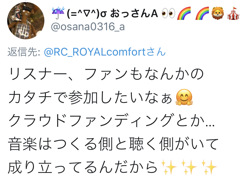 そして、それを音楽を愛するファンの皆様と一緒に作り、アーティストや、その先のライブハウスの支援に広げてゆきたいです。