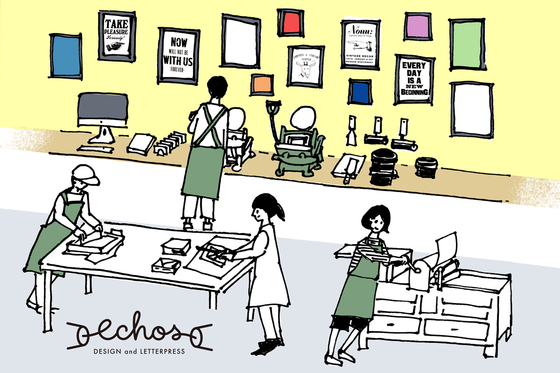 私はこの言葉が、活版印刷、そして人と人が繋がったり、想いが伝わることに通じる言葉だと感じ、ワークスペースを「Echo」を基にした「Echos」と名付けました。