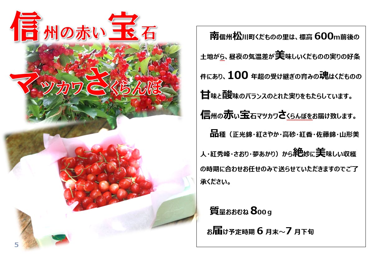 くだものの里信州松川町は、標高およそ500mにある天竜川の谷から、南アルプスを望む700mの地は、昼夜の温度差が大きく、甘み酸味のバランスの取れた、🍒さくらんぼ、🍎りんご、🍐梨、🍇ぶどう、🍑桃、プルーンなどたくさんの品種のくだものを育てたり、加工しております。
