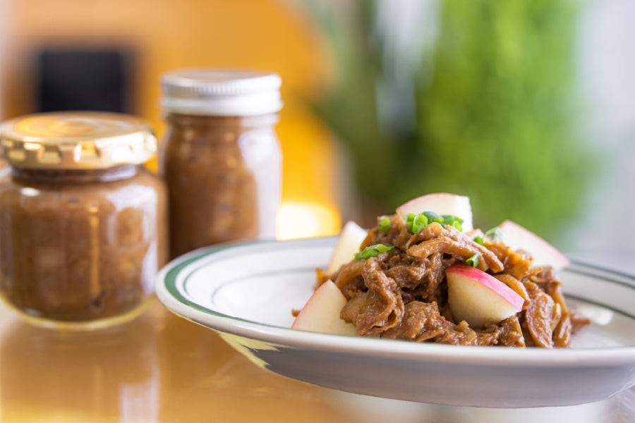 「Porta」木村シェフによる、青森県ご当地食材を使用したご飯のお供です!濃厚で大粒なお肉のような食べごたえがある名産ホタテと、シャキシャキ食感で甘く酸味の効いた特産りんごを使用。風味豊かな味噌が食材を引き立たせ、食欲をかきたてられます。なによりも、アツアツご飯と相性バツグン!瓶詰めにしているので、友人や親戚への贈答用にもオススメです!(日本全国対応)