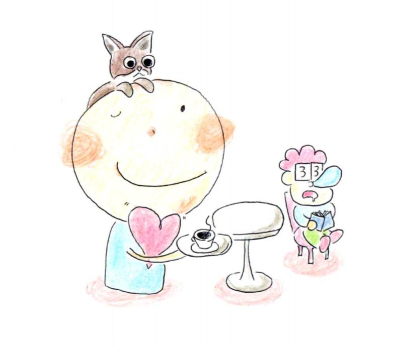 イラストやお手紙を見て、コーヒーや紅茶でも飲みながら