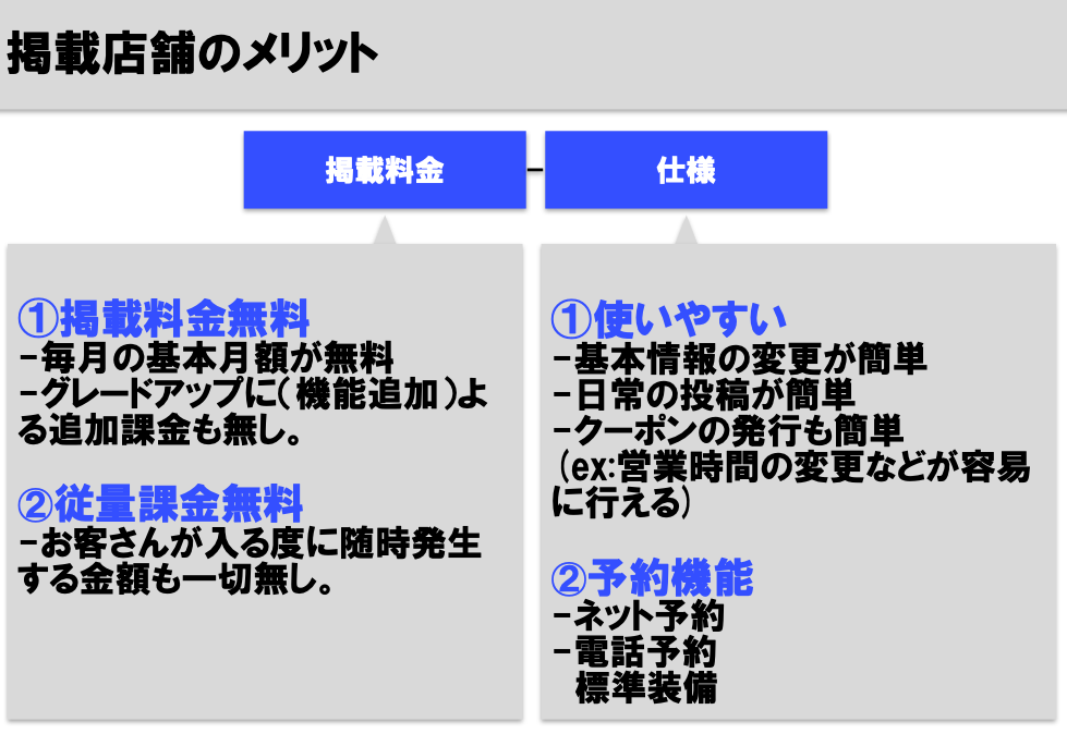 『皆さんの使用料』によって『飲食店の皆さん、観光業の皆さん、掲載店舗の皆さん』の掲載料を無料にする事が可能となります。