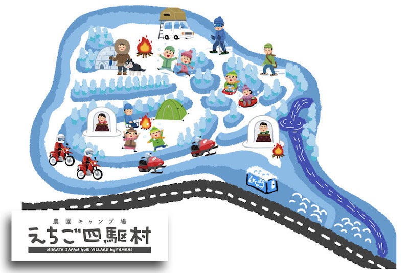 えちご四駆村の立地はとても良く、山の町” 阿賀町 ”でも新潟県の中型都市” 新発田市 ”寄りの地域でドンキホーテやイオンも30分以内にあり、新潟駅から車でピタリ1時間、大雪の立ち往生などの影響を受けにくく、交通渋滞も起きにくい立地です。
