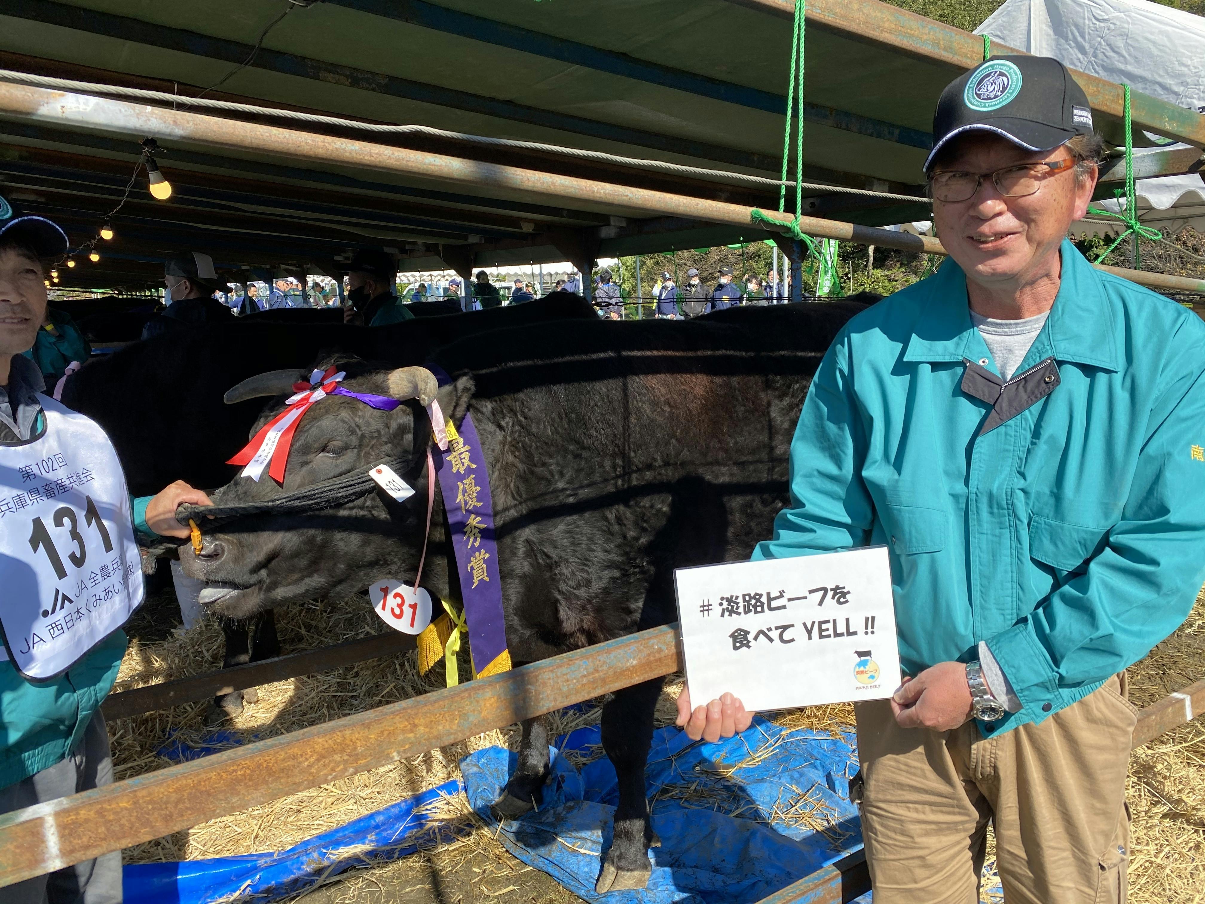 その兵庫県の畜産農家さんが手塩にかけ育て、この日の為に磨き上げた愛牛が淡路島に集まり、その中淡路島の垣幸司さんの但馬牛が見事、最優秀賞3席に選ばれました。