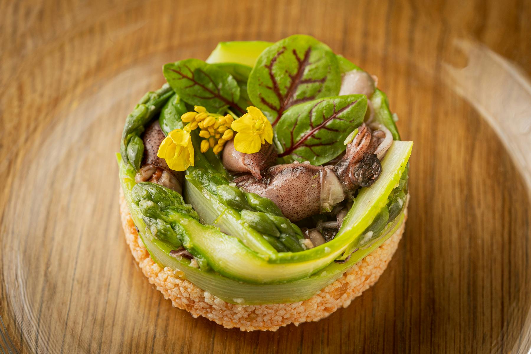ホタルイカとアスパラガスのタブレ仕立て