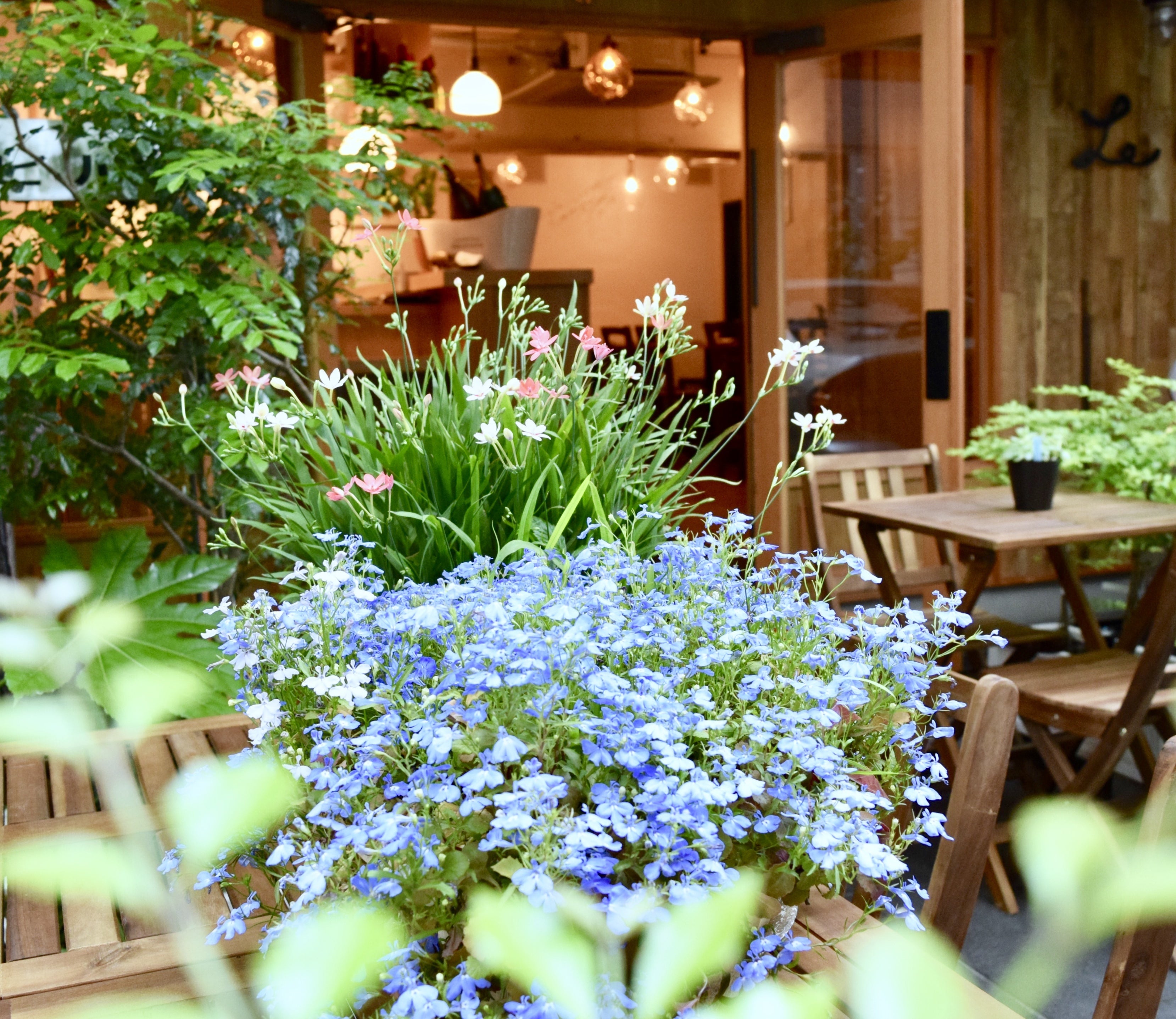 大通りから小道に入り、石畳のアプローチを進むとウッディな店構えのル シェーヌが姿を現します。まるでパリの街角に佇むビストロのように趣き深い店構えは、一瞬で訪れた人を非日常の世界へ誘います。