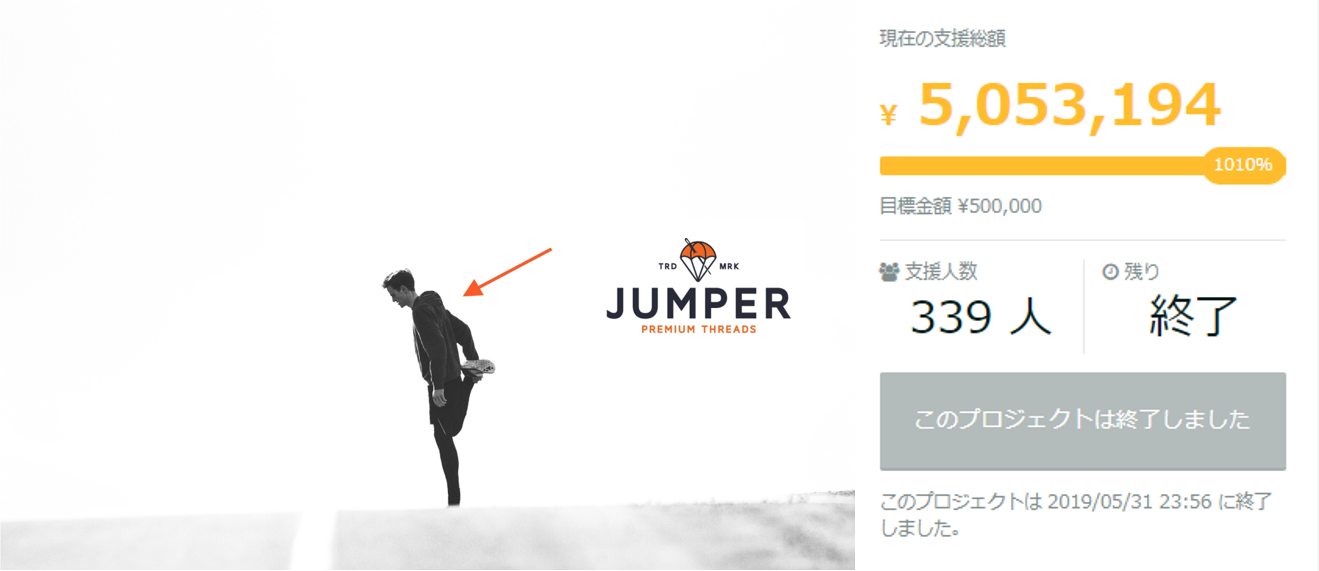 また、昨年行ったジャケット「Action Jacket」のクラウドファンディングでは500万円を達成。