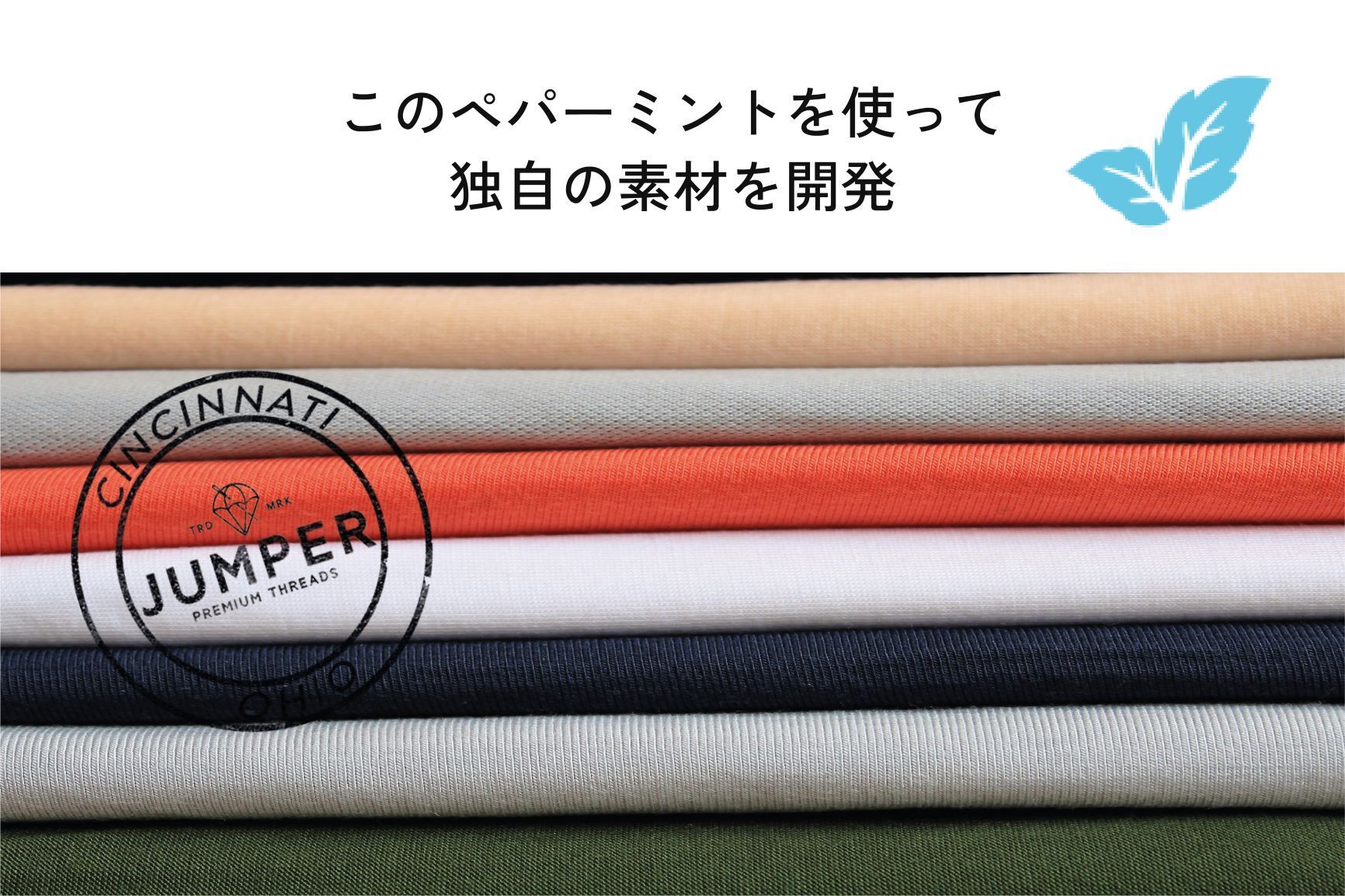 今回Jumper Threadsが開発したペパーミントリーフ素材は、ペパーミント自体の抗菌性能を生かした素材。