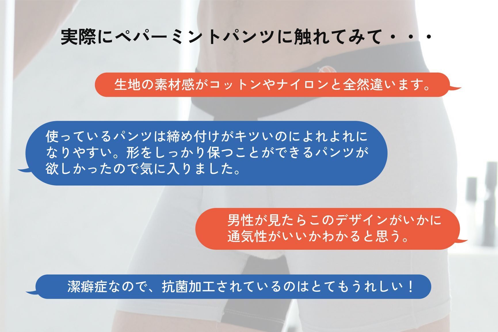 「ペパーミントをアンダーウェア繊維に入れることができれば、清潔感のあるアンダーウェアが作れるのではないか?