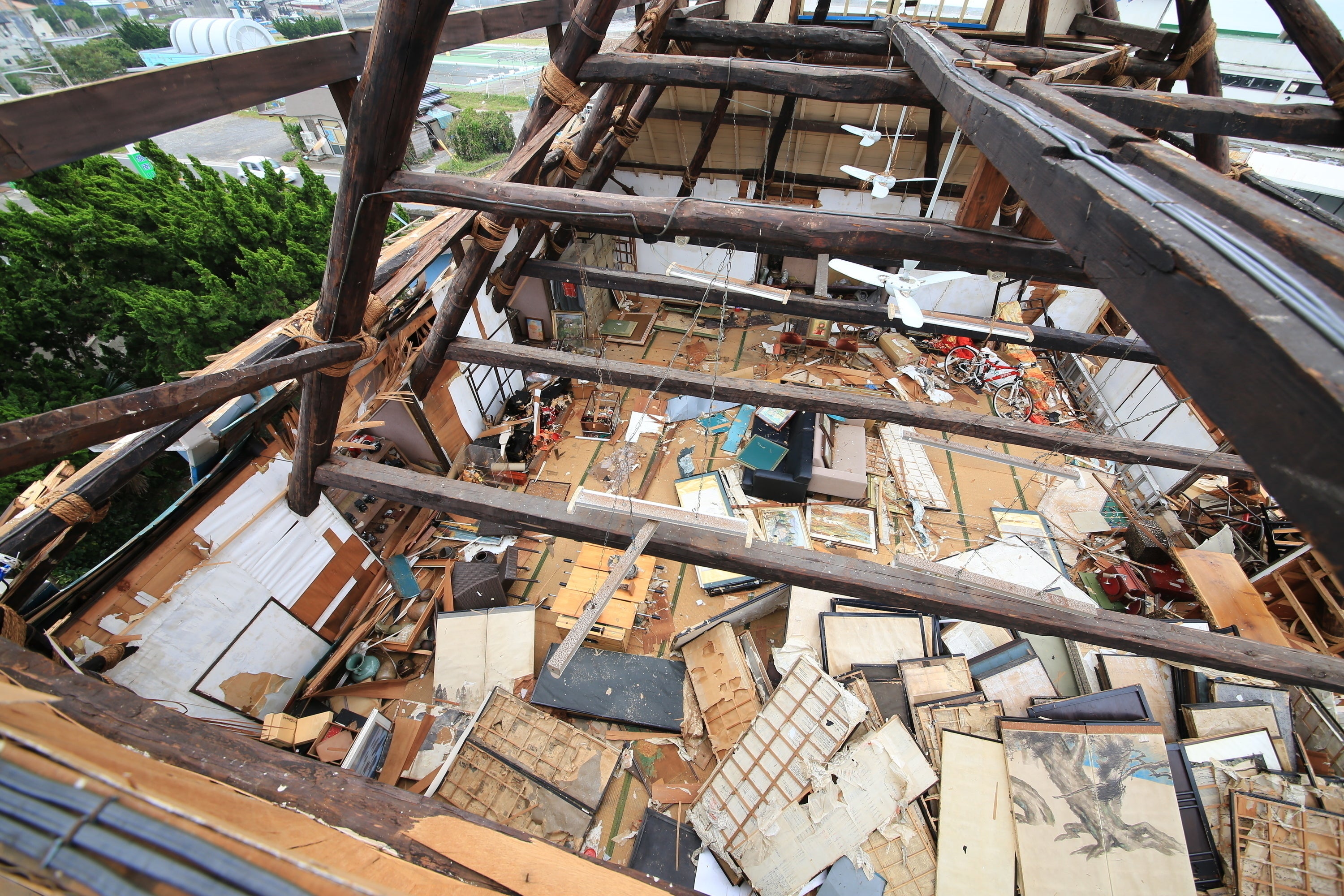 2019年9月9日。房総はこれまで経験したことのない台風が襲いました。翌朝私達の目に飛び込んできた、無残にも半壊状態の合掌舘。状況がわからず、だけど事の重大さは伝わり、ショックで、涙があふれたのを覚えています。今すぐにでも現地に駆け付けたい、そんな思いにかられましたが、自分自身の家も被災し、思うように行動に移れない自分がいました。