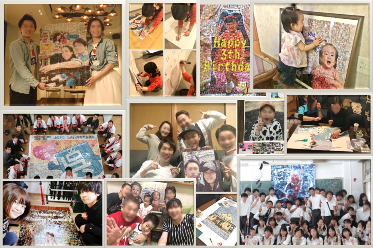 当社では2010年に日本で初めてフォトモザイクアートの制作サービスを開始しており、今まで有名アーティストや企業広告、公的機関でのイベント、会社の周年行事、結婚式サンクスボード等様々なシーンでご利用いただいています。弊社サイトに実績として一部を掲載しておりますので、「過去の主な実績」(https://pimoza.com/contents2-9.html)をご覧ください。