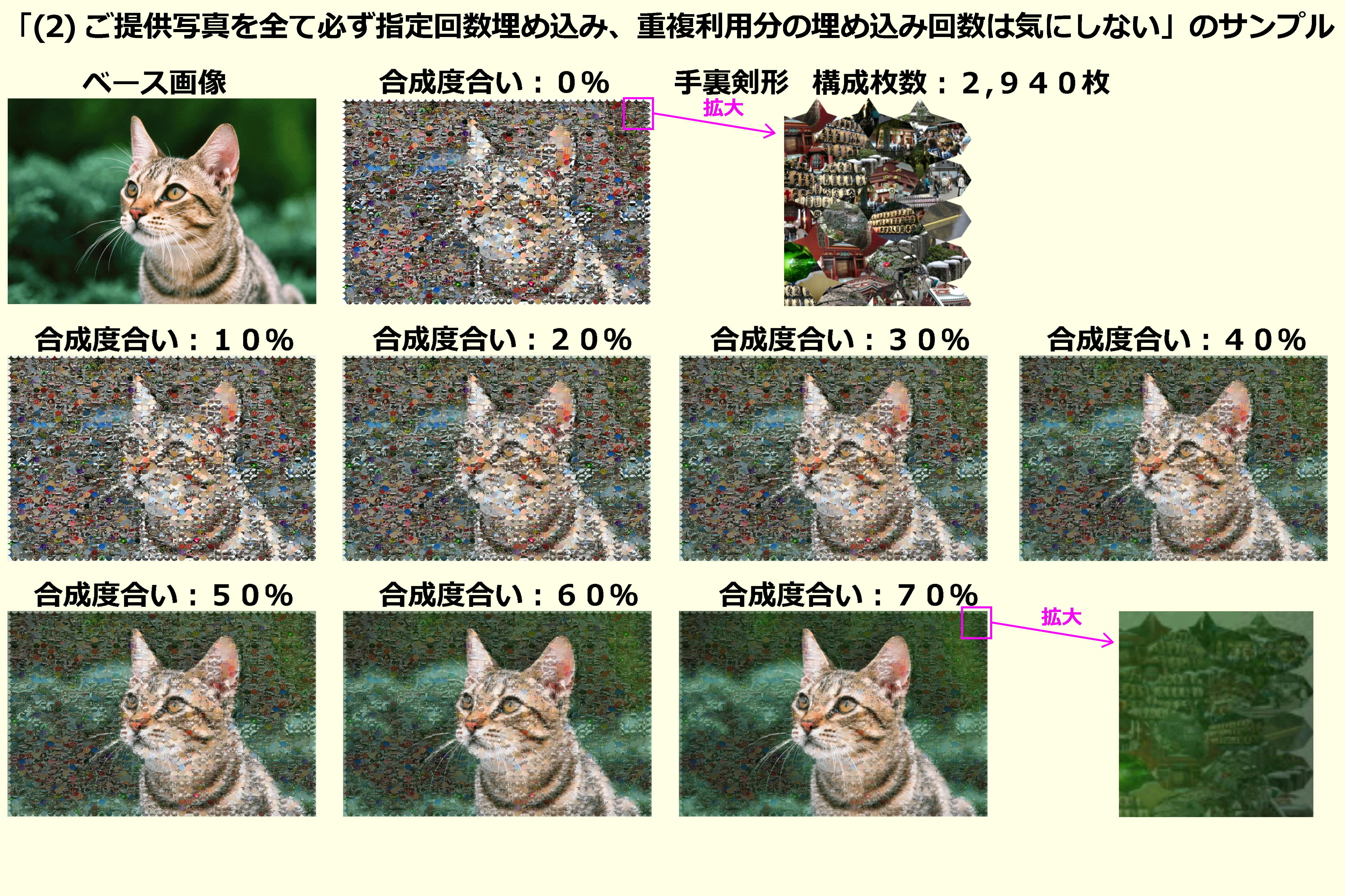 (2) ご提供写真を全て必ず指定回数埋め込み、重複利用分の埋め込み回数は気にしない