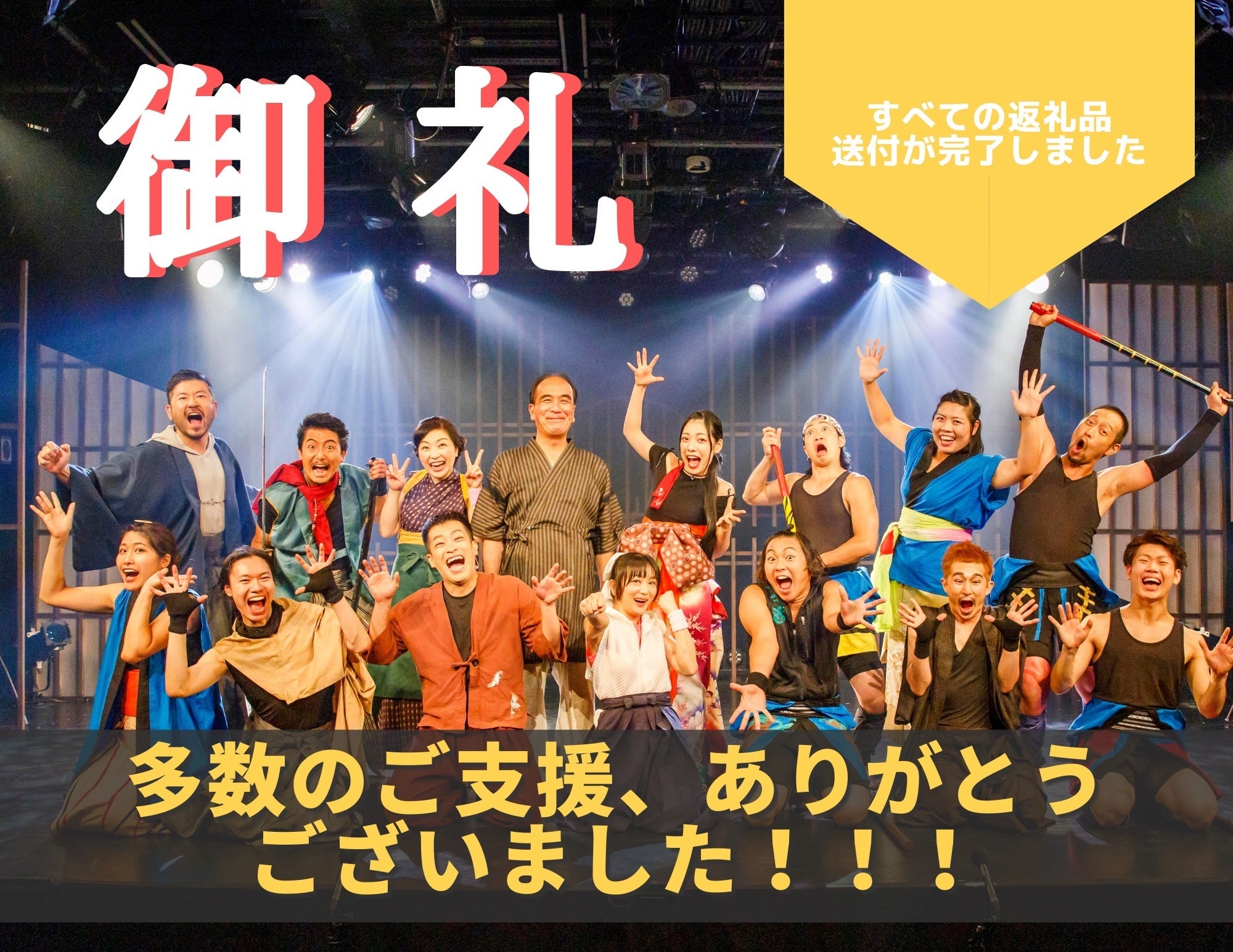 もし行政による再度の緊急事態宣言発令などで公演中止となった際、購入済みチケットの払い戻しはございません。後日収録の『衣装つき通し稽古動画』ならびに『上演台本』、『公演グッズ』を郵送させていただきます。本リターンに関しても予定通り郵送させていただきます。