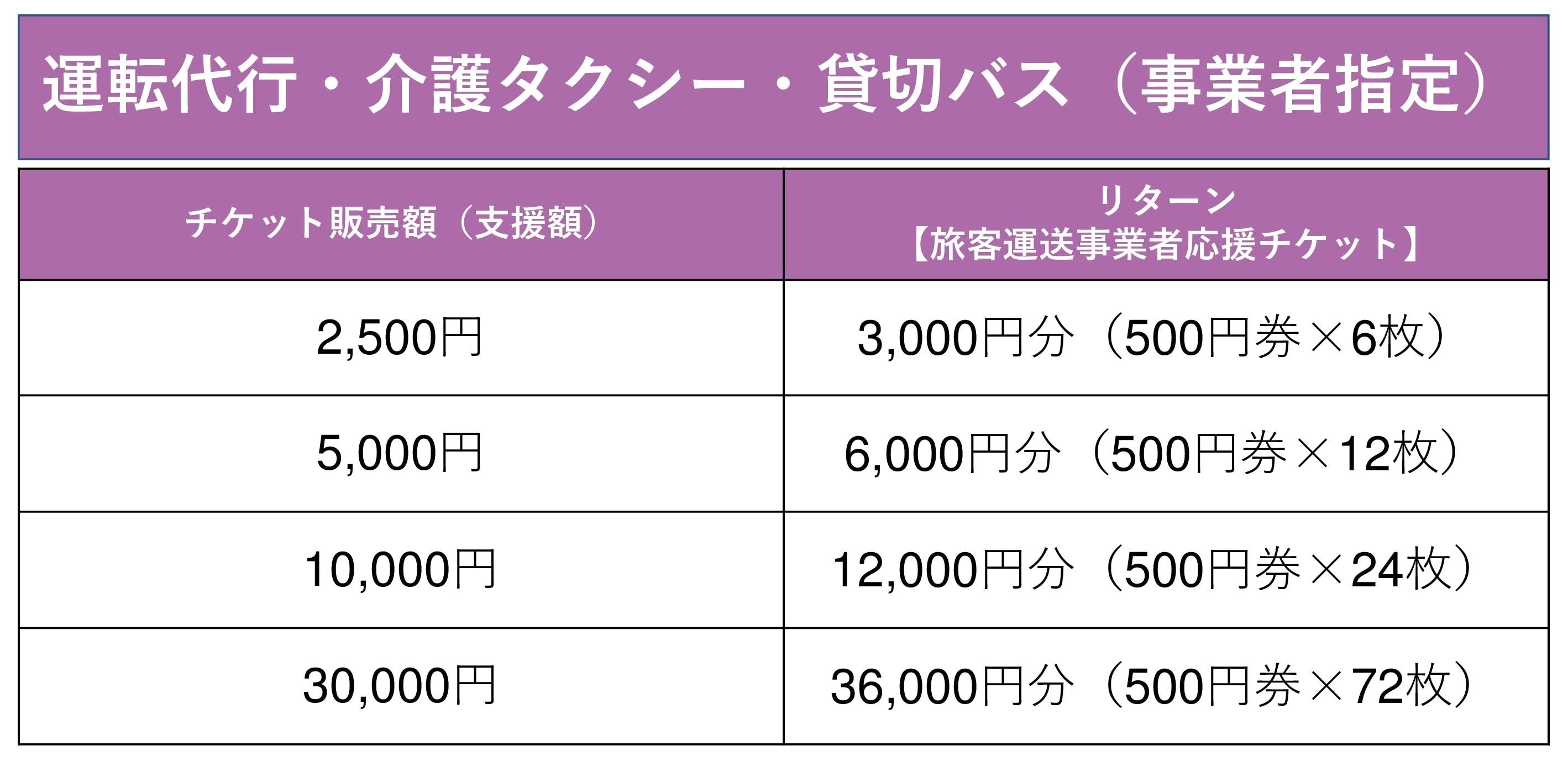 ●貸切バスは以下のチケットを発行いたします。