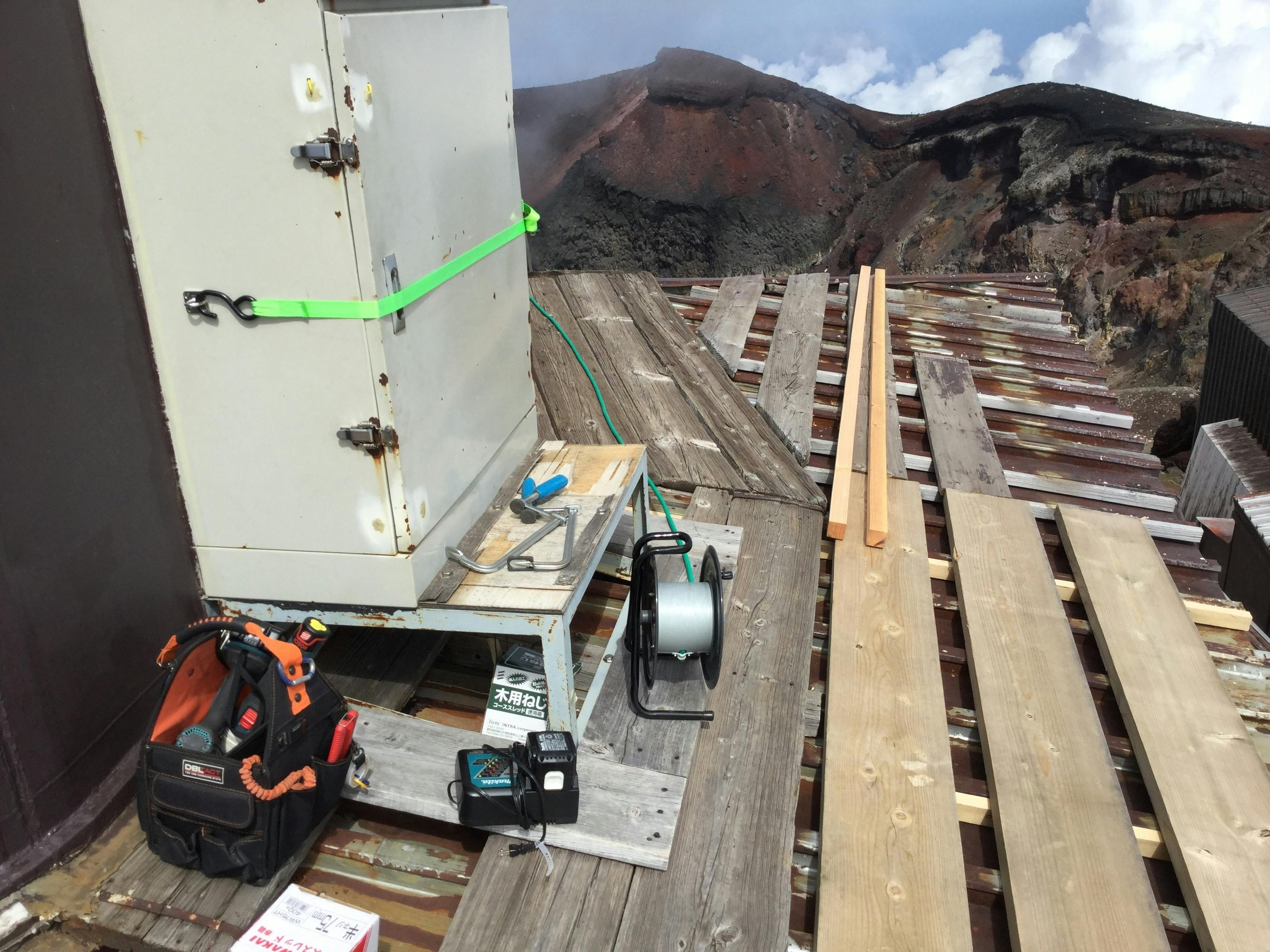 我々NPOは気象庁から旧測候所を借用しているわけですが、その条件として、建物やインフラはNPO側で維持することになっております。そのため、夏期観測中は、観測のみならず修繕も行わなければなりません。極地ある建物ゆえ、わずか一年でも建物への傷みは絶えず進行していきます。そのため毎年少しずつ修繕をしておりますが、外部業者への依頼をするとその経費は地上で頼むのと桁が1つ変わるぐらい価格が変わります。そのような経費は我々が支払うことは難しいため、NPO内部で修繕を行うことになります。