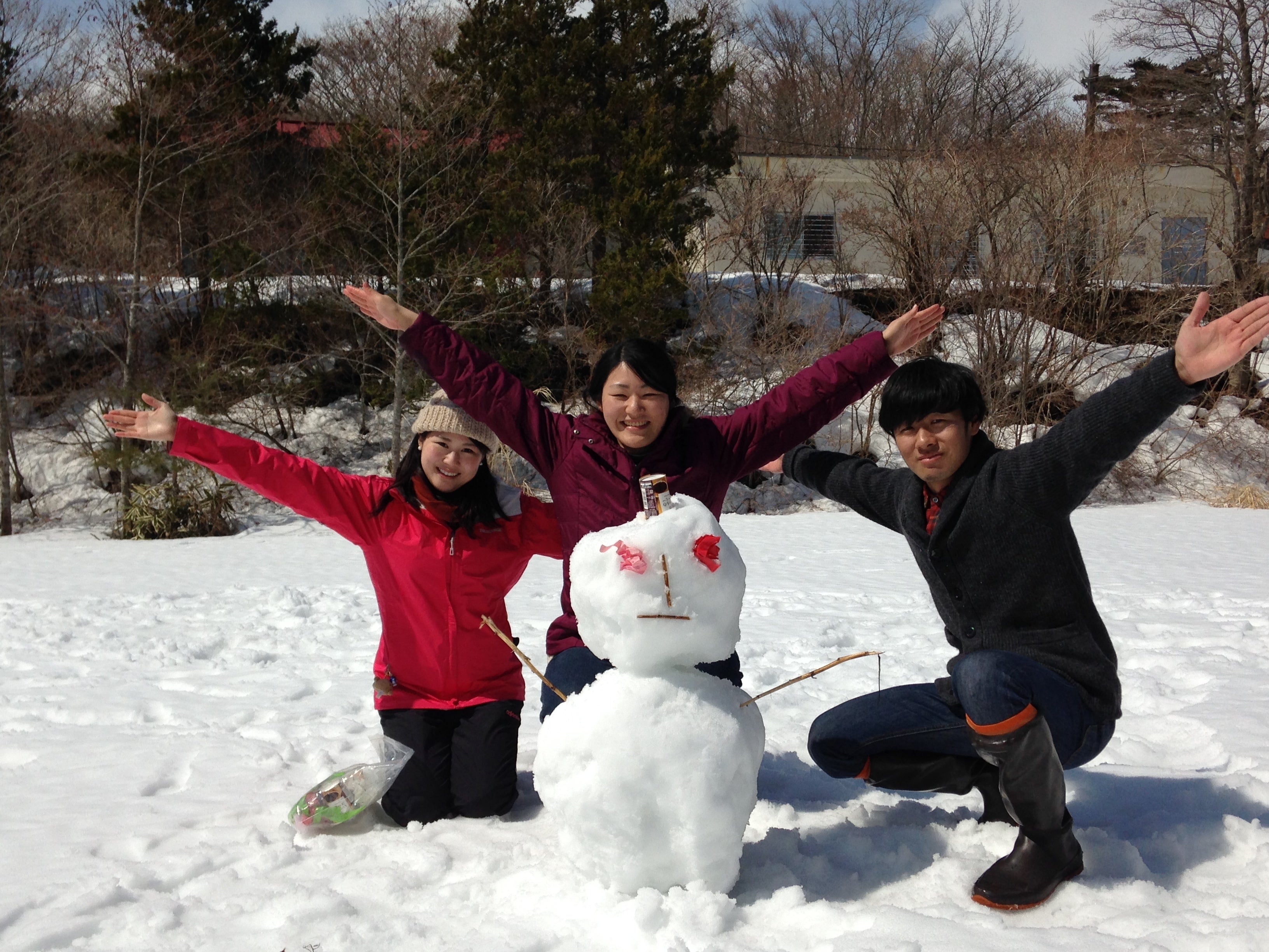 雪だるまと一緒にポーズ(^_^) 冬季サンプリングの楽しみの一つです。