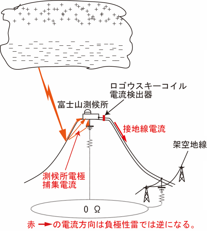 富士山の山頂では雷雲を見下ろすことも多々あります。「落雷」は、雷雲から下に向かって落ちてくるという感覚に合った言葉ですが、山頂では必ずしも落ちてくる雷ばかりではなく、昇ってくる雷も珍しくないのです。そして、山頂にはとても多くの落雷があります。