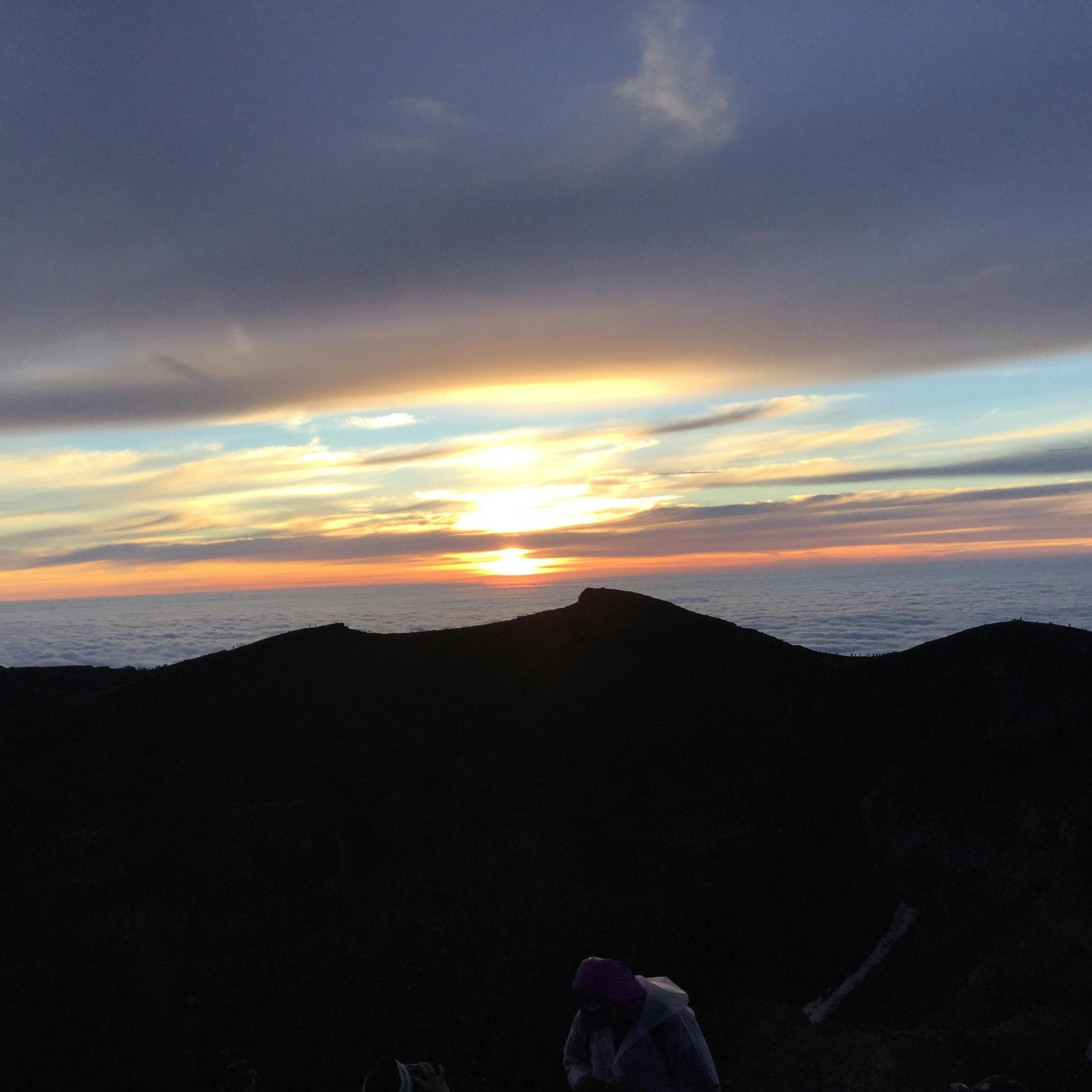 一般の登山で富士山といえば御来光でしょう。5時前の日の出を拝むというのは登山の最大の楽しみの一つと言えます。多くの登山客が深夜3時ごろから山頂に集合し、日の出を待ちます。一方、我々研究者達は、御来光を見ることが目的ではないことから、特段に旧測候所外で集まって日の出を待つことはあまりありませんが、時間的にも天候的にもチャンスがあれば御来光を拝む時もあります。