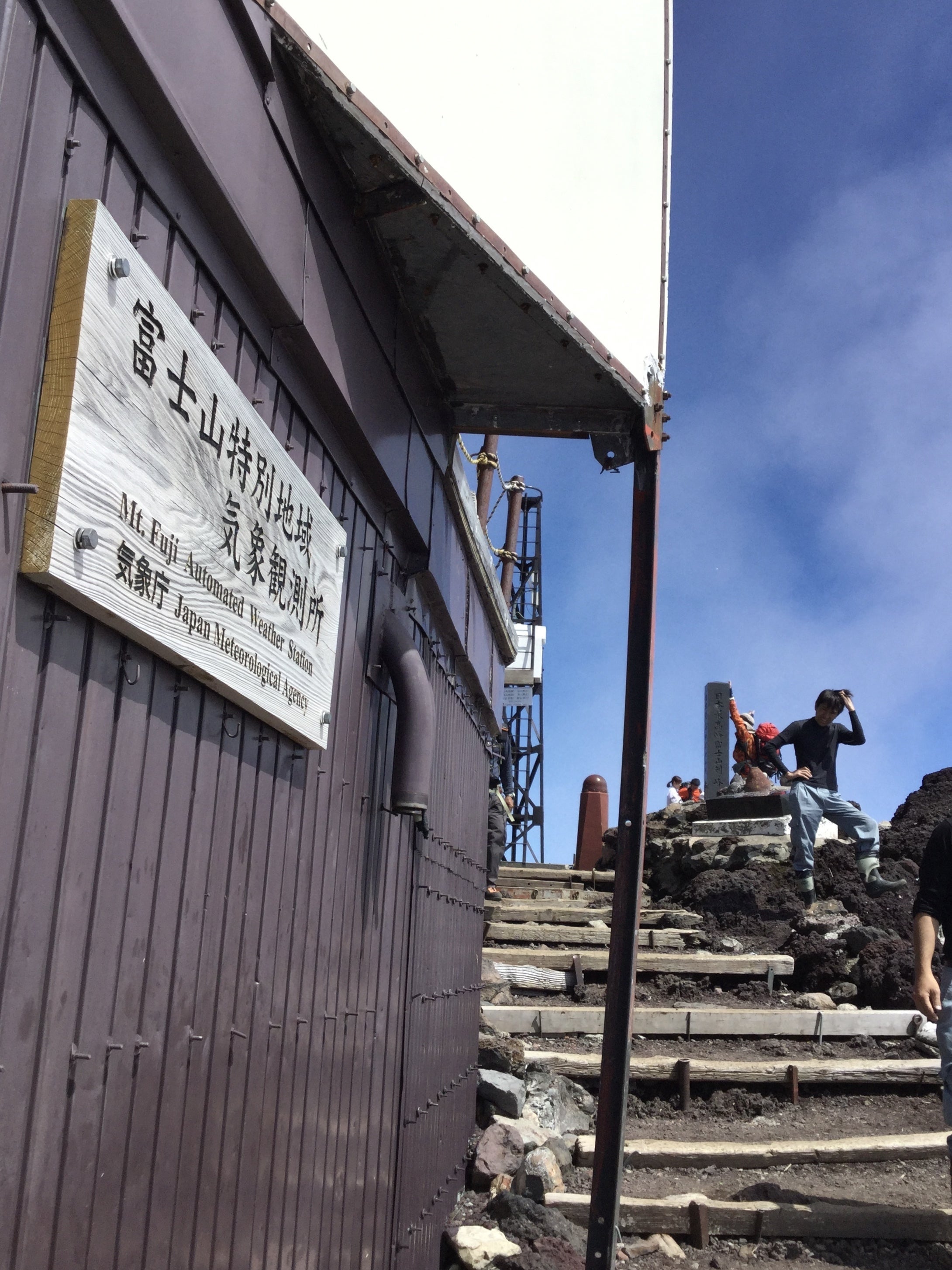 本日で7日目になりました。皆様のご支援のお陰で目標の4割を超えるところまできました。深くお礼を申し上げます。旧富士山測候所は現在、富士山特別地域気象観測所となっています。つまり現役の測候所ではないわけですが、富士山測候所という名は広く知られているため、私等NPOでは旧富士山測候所と呼ぶことがほとんどです。写真右手にある階段を登れば日本最高地点の3776 mになります。夏は多くの登山客がこの最高地点に集まります。