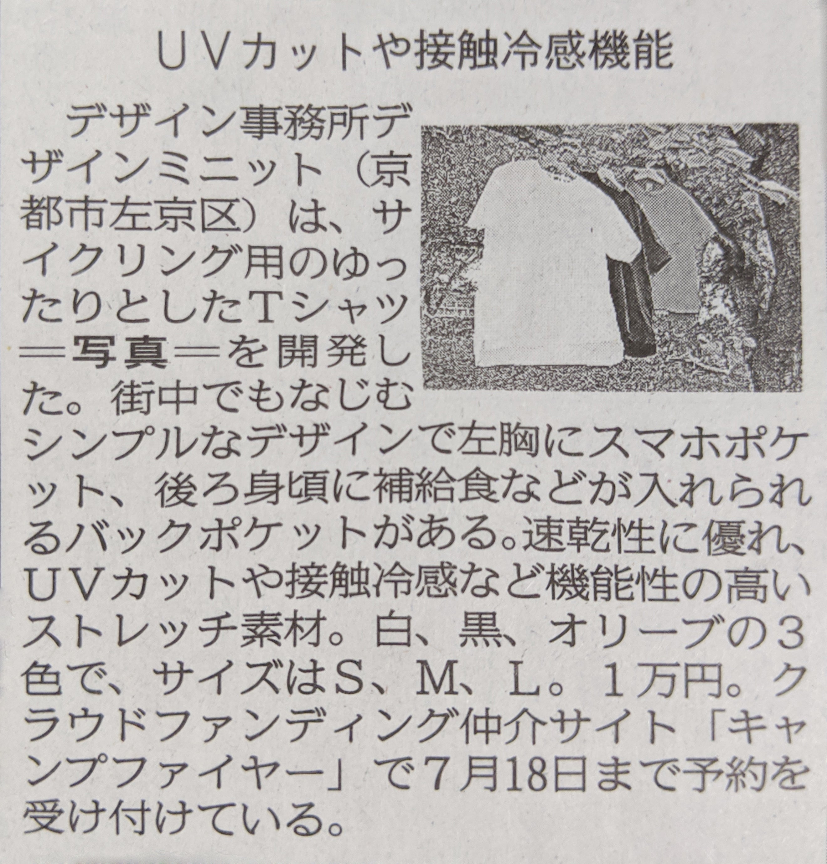 京都新聞6月27日の朝刊「エコノBOX」のコーナにーHOUR QUICK DRY CYCLE TEE(アワークイックドライサイクルティー)を取り上げていただきました!