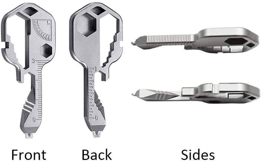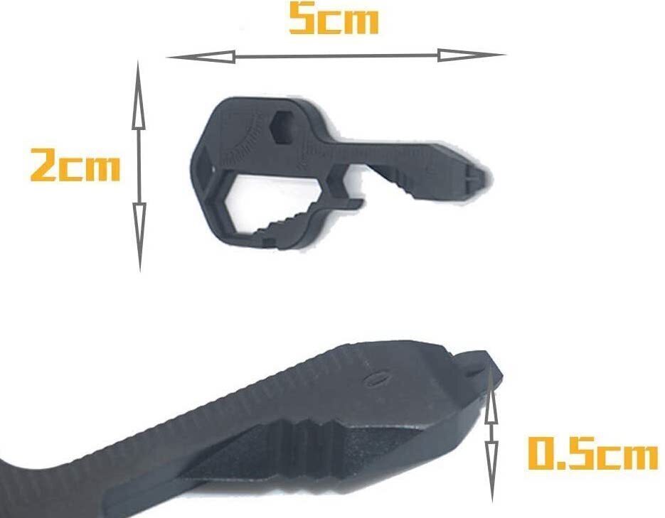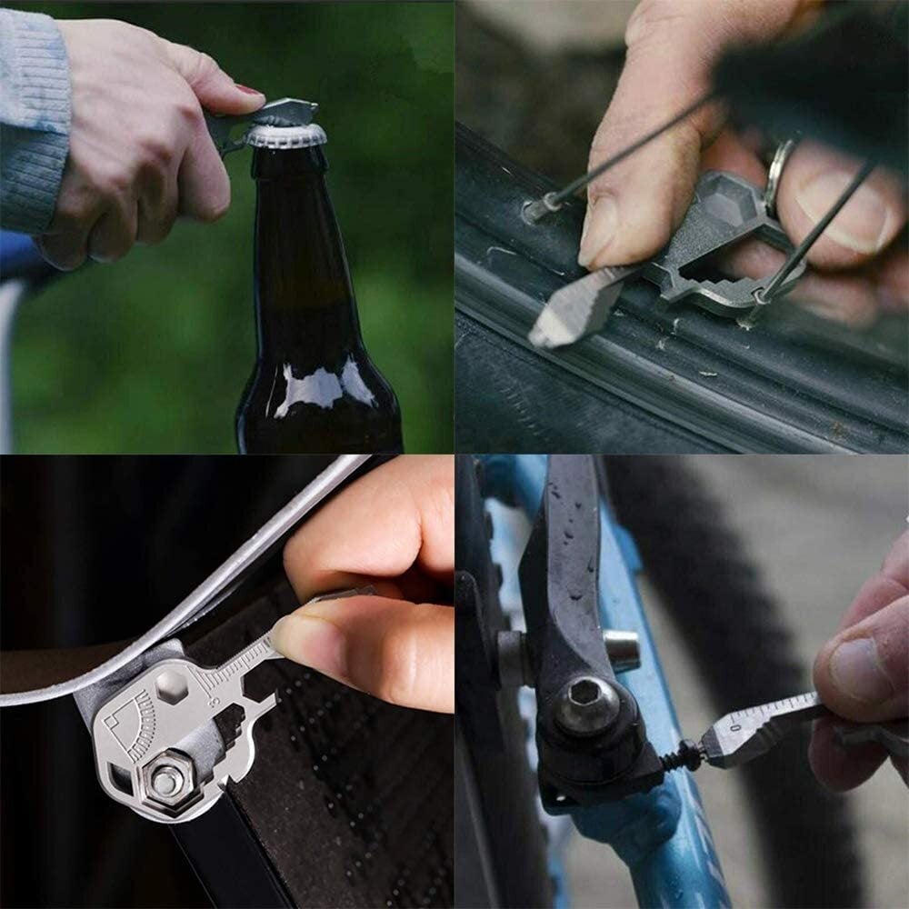 【多機能】24 in 1多機能キーチェーン、キーリング、3.2 / 3.3 mm標準オープンスポークレンチ、ドライバーヘッド、90°分度器、ボトルオープナー、缶切り、その他の機能に掛けることができ、非常に便利です。日頃の生活でのちょっとした作業に役立つ機能を搭載。