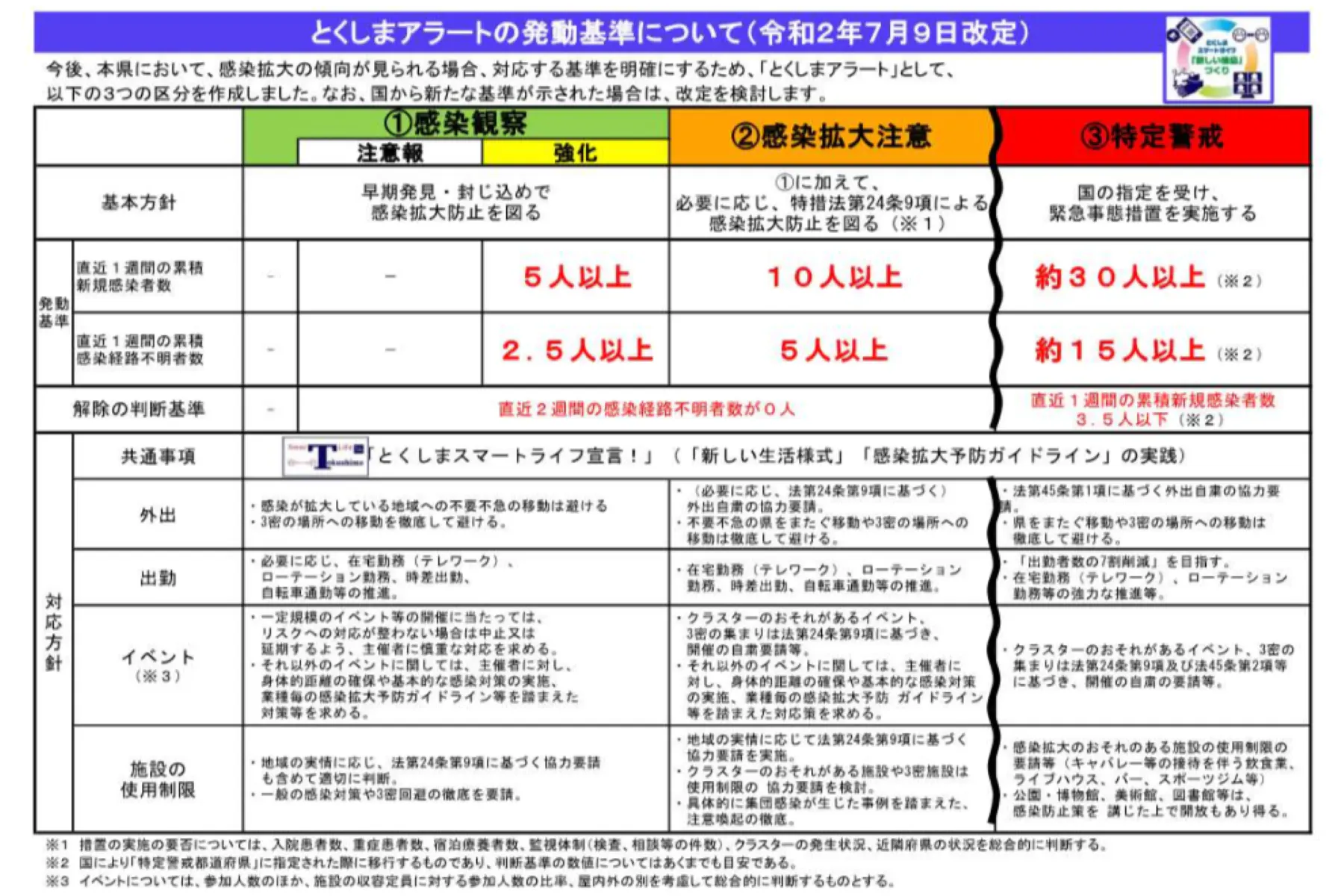 ・徳島県が発表している「とくしまアラート」に基づいて判断をする予定です。