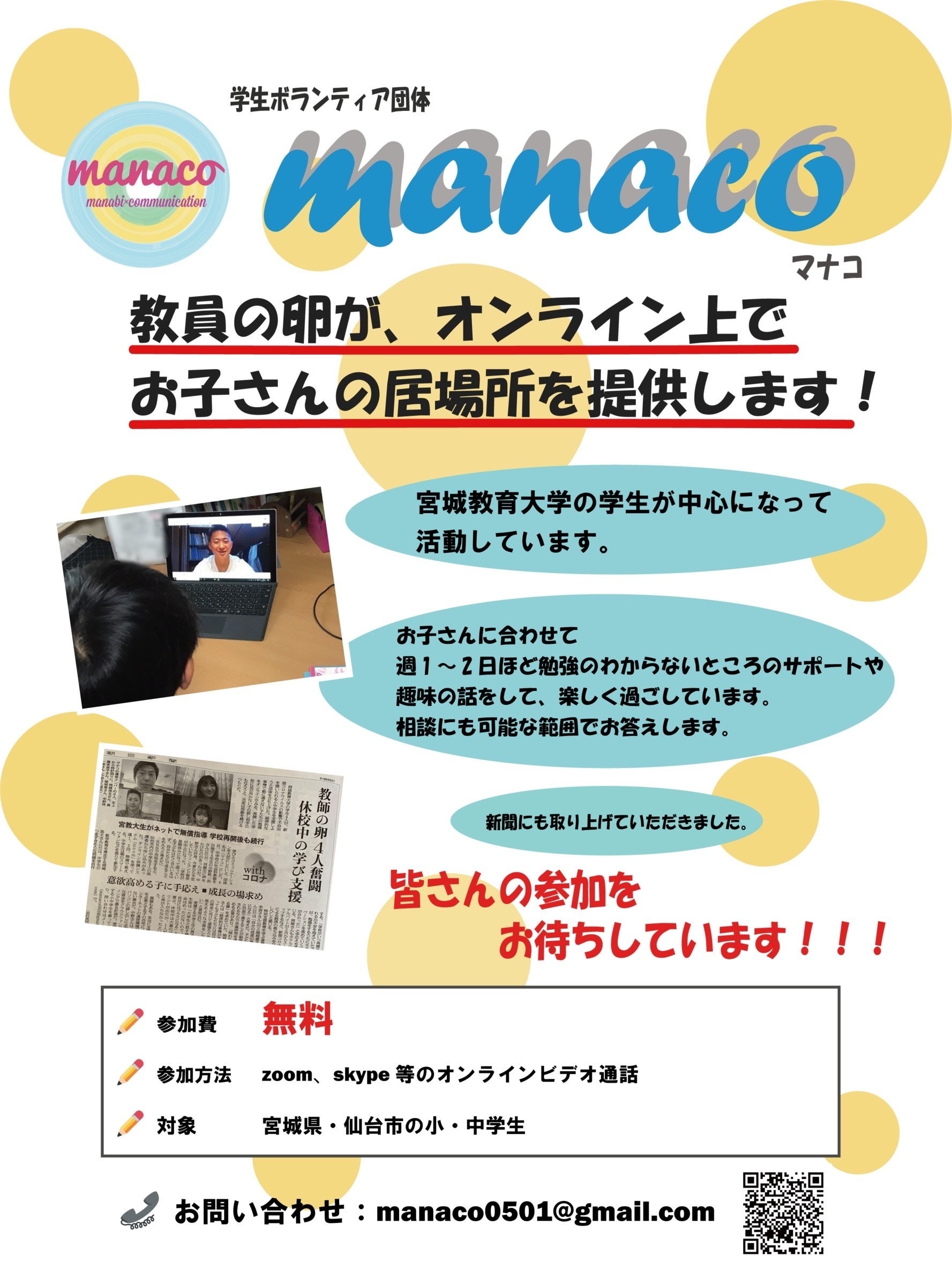 私たちは子どもの為の学生ボランティア団体manaco(マナコ) と申します。