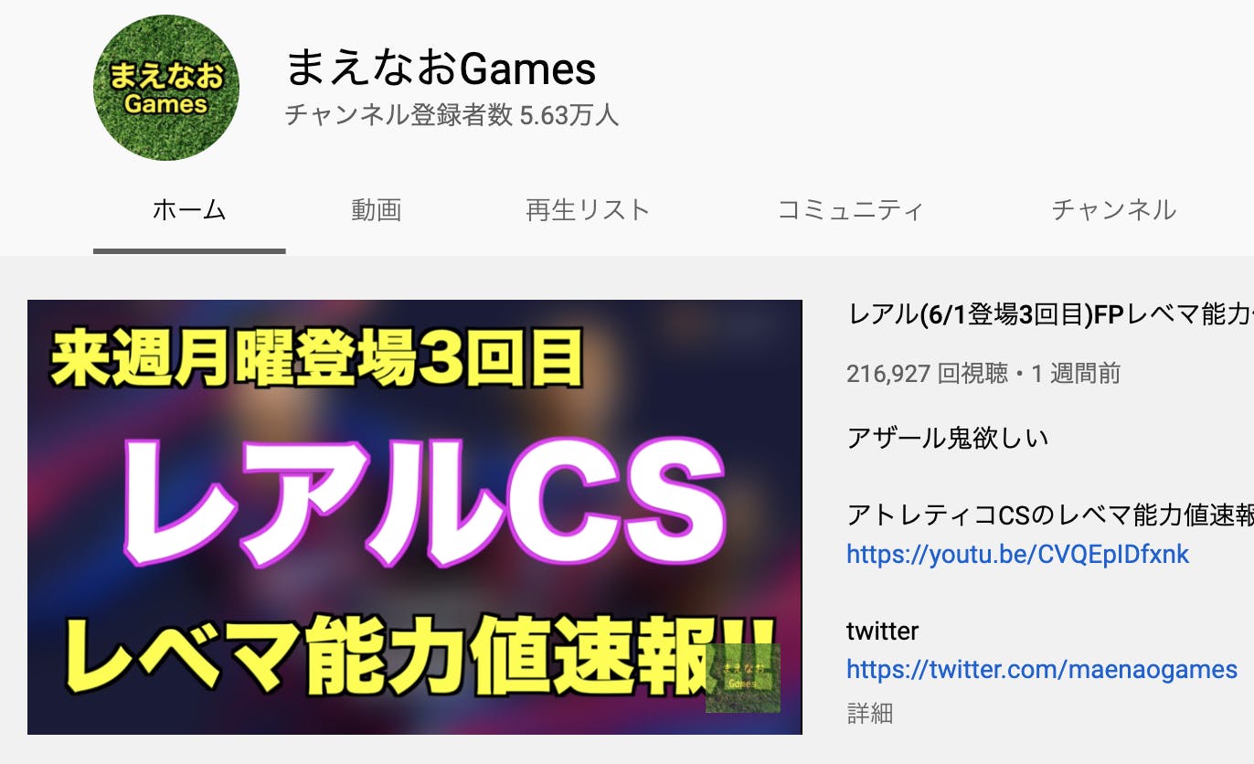 YouTubeチャンネル登録者数 56,000人 総再生数2384万再生 Mirrativ→不定期で配信
