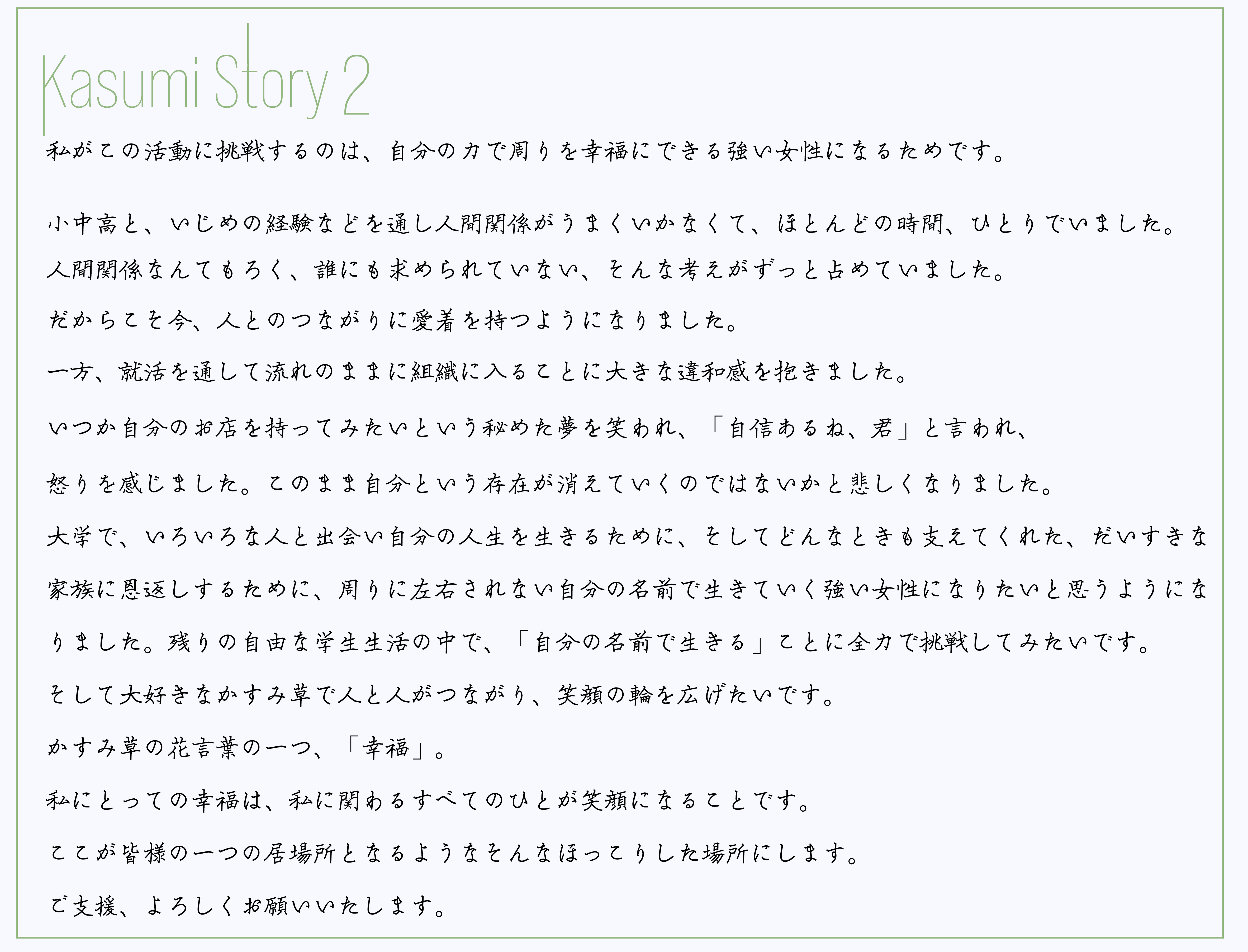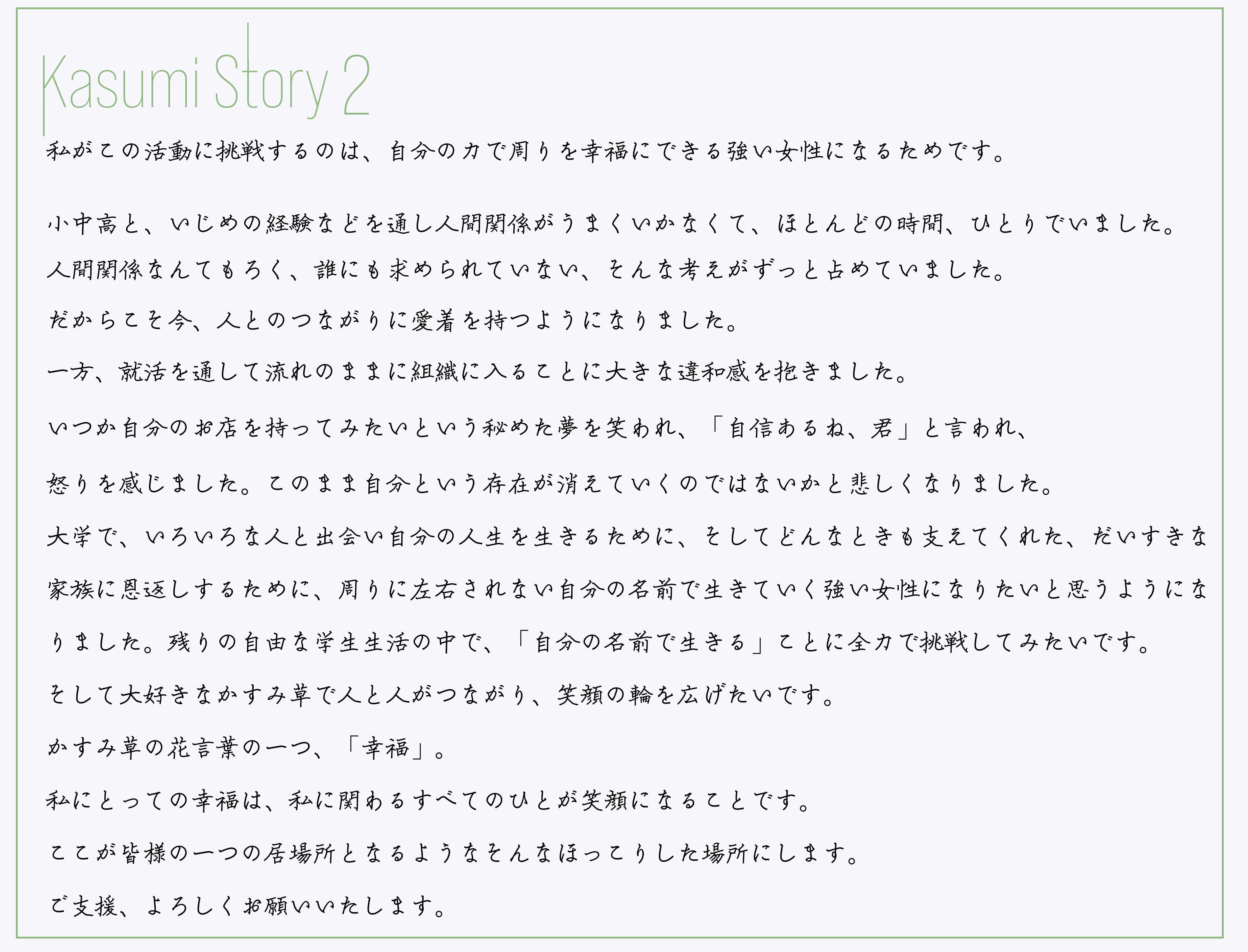 Kasumi Jikanの"想い" を皆様に届けたい。