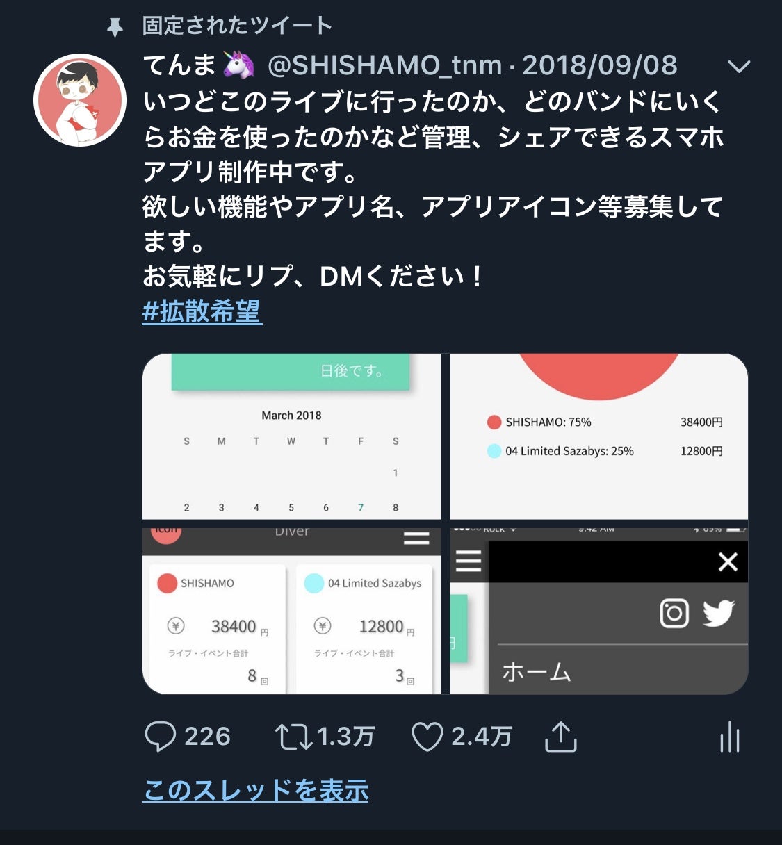 約2年前、専門学校時代にこのアプリを思いつき、軽い気持ちでツイートしたところ13000リツイートになるまで拡散されました。(諸事情により現在はこのツイートは残っておりません。)