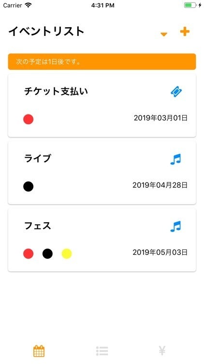 ライブやチケット支払日などの予定を入力し、管理する。