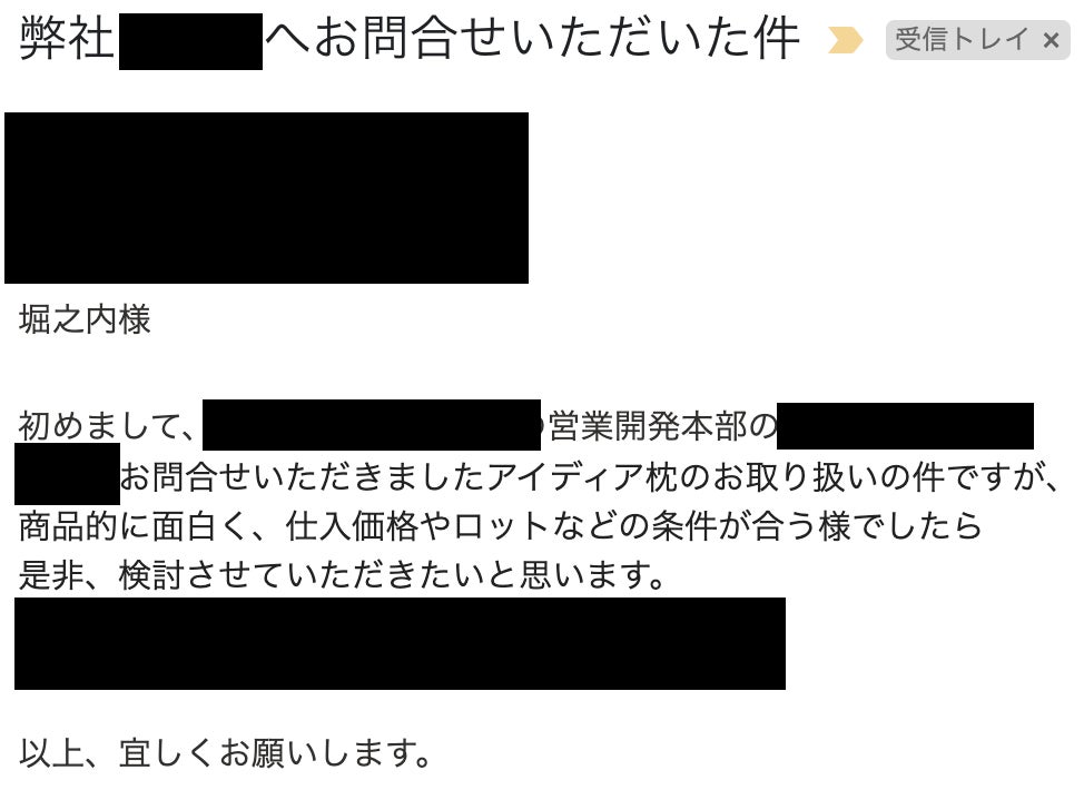 今後の納品先を探していたところある企業様から好感触の反応をいただけました!
