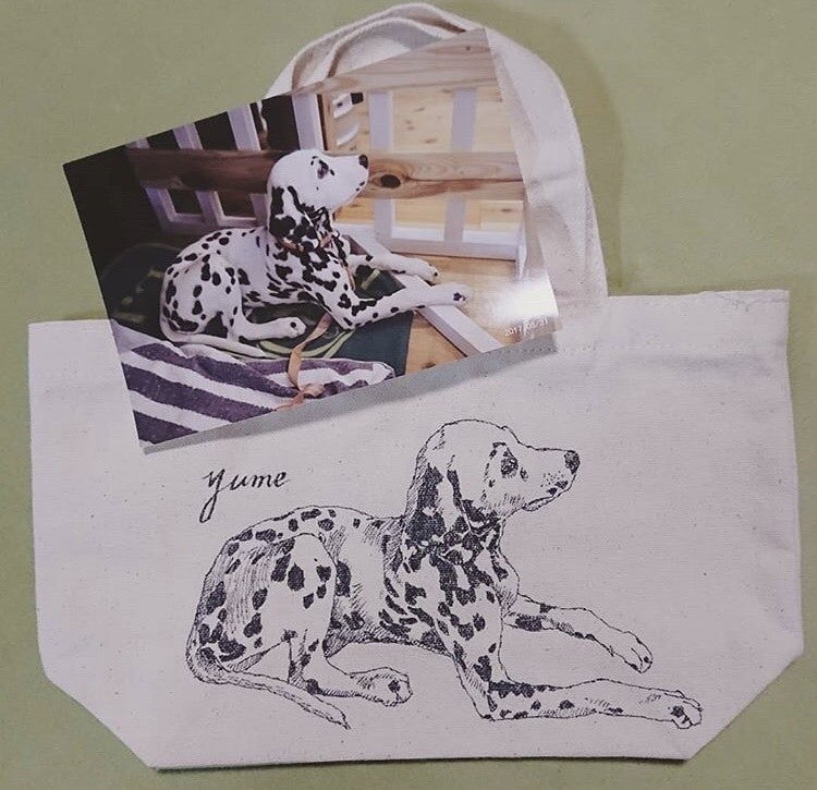 お好きな画像を送信して頂き、以下のように周藤さんの手によってデザインされたエコバックをご送付いたします。
