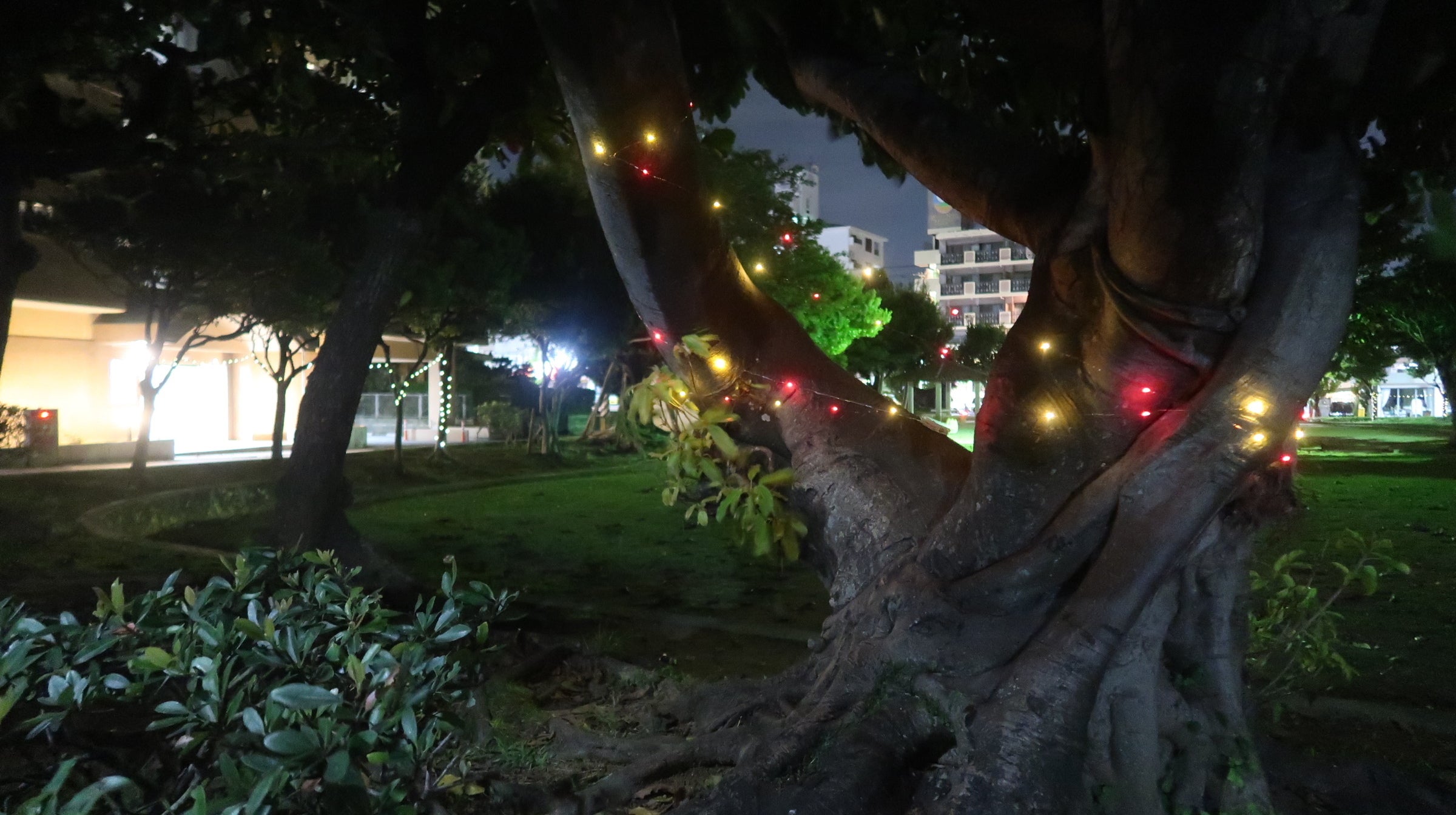 宜野湾海浜公園で5つの木に、いこいの市民パークは事務所、入り口側含めて8本の木で合計13本の木に