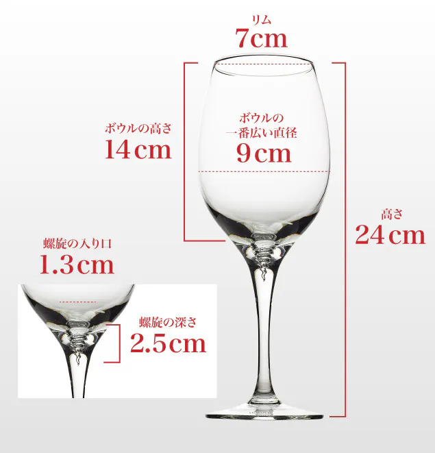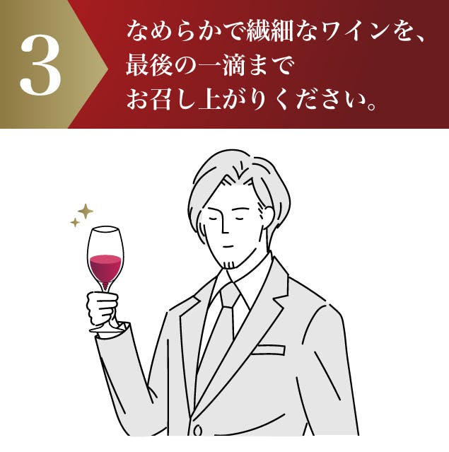 ワイン本来のおいしさを、最後まで味わえるワイングラス。
