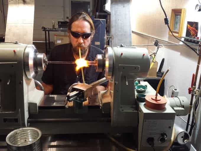 アメリカで特許を取得しているこの特殊な螺旋状のグラスは機械的な生産が難しく、1つ1つ職人によって手作りされています。手作りしているからこそ、この緻密に計算された螺旋がデザインでき、商品として生産されています。