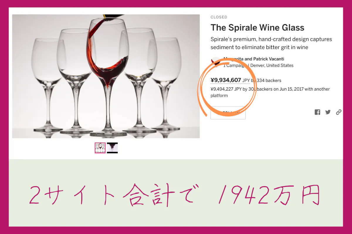 4年かけて出来たワイングラスは世界で沢山の方に支持されました。なんと、累計約1942万円もの支援を集めるに至ったのです。マルガリータと同じように、オリに悩む世界中の人に支持されました。