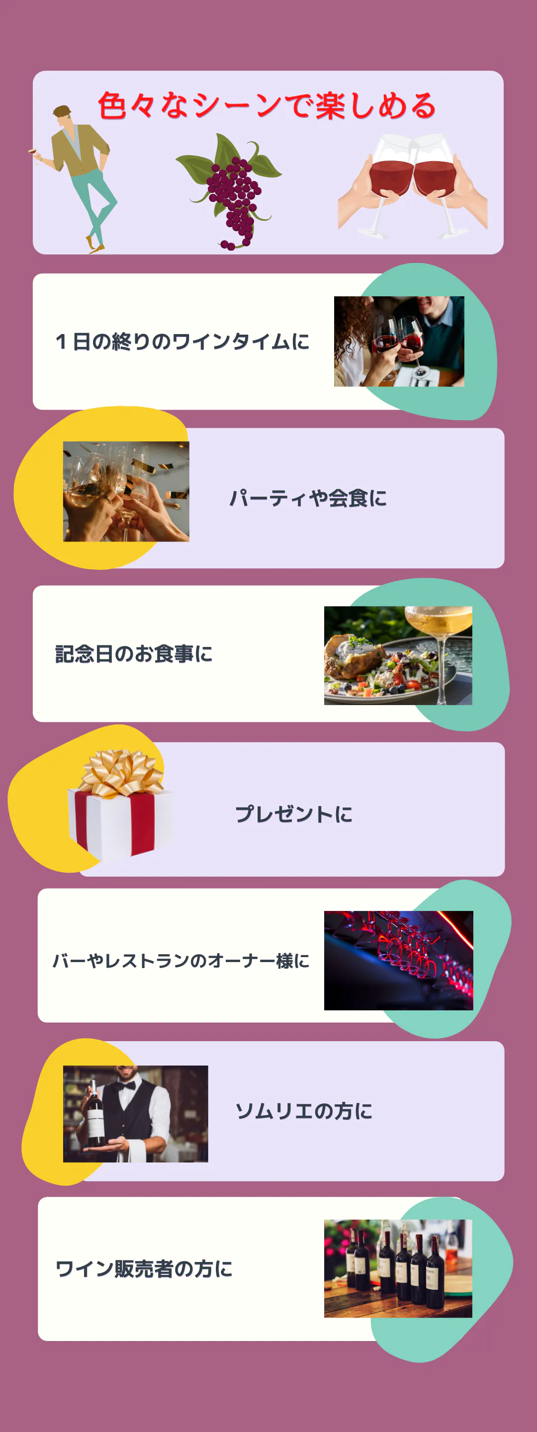 ワイン愛好家として、「もっと広くワインのおいしさを知ってほしい」、「もっとワインの経験値を高めてほしい」とワインがみなさんの生活の一部となればと、日々活動に励んでいます。