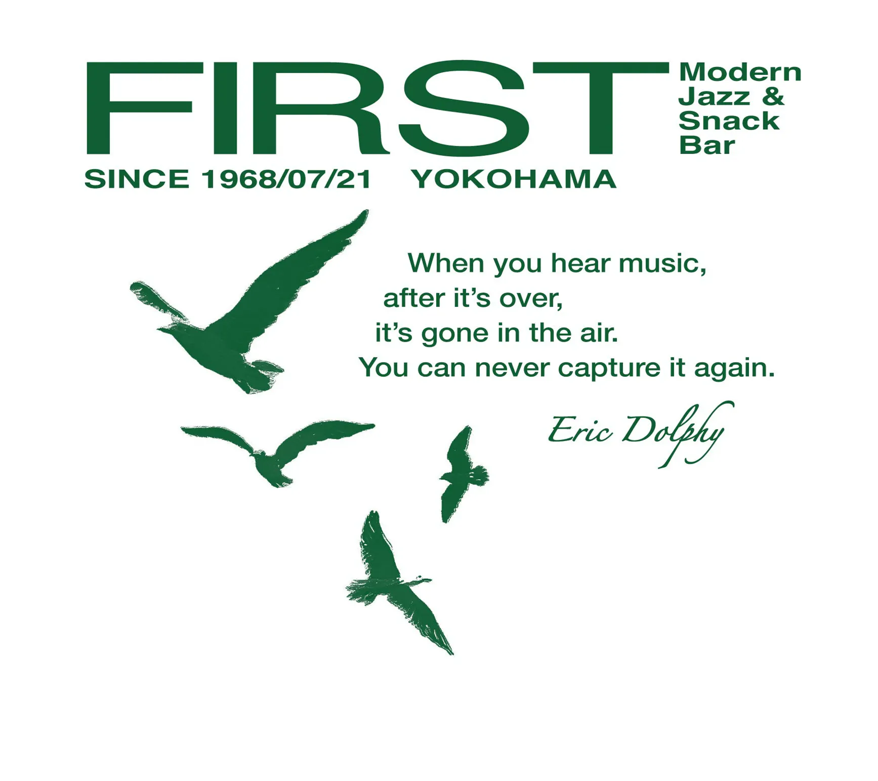 デザインはカモメとFIRST ロゴ、エリック・ドルフィーの名言