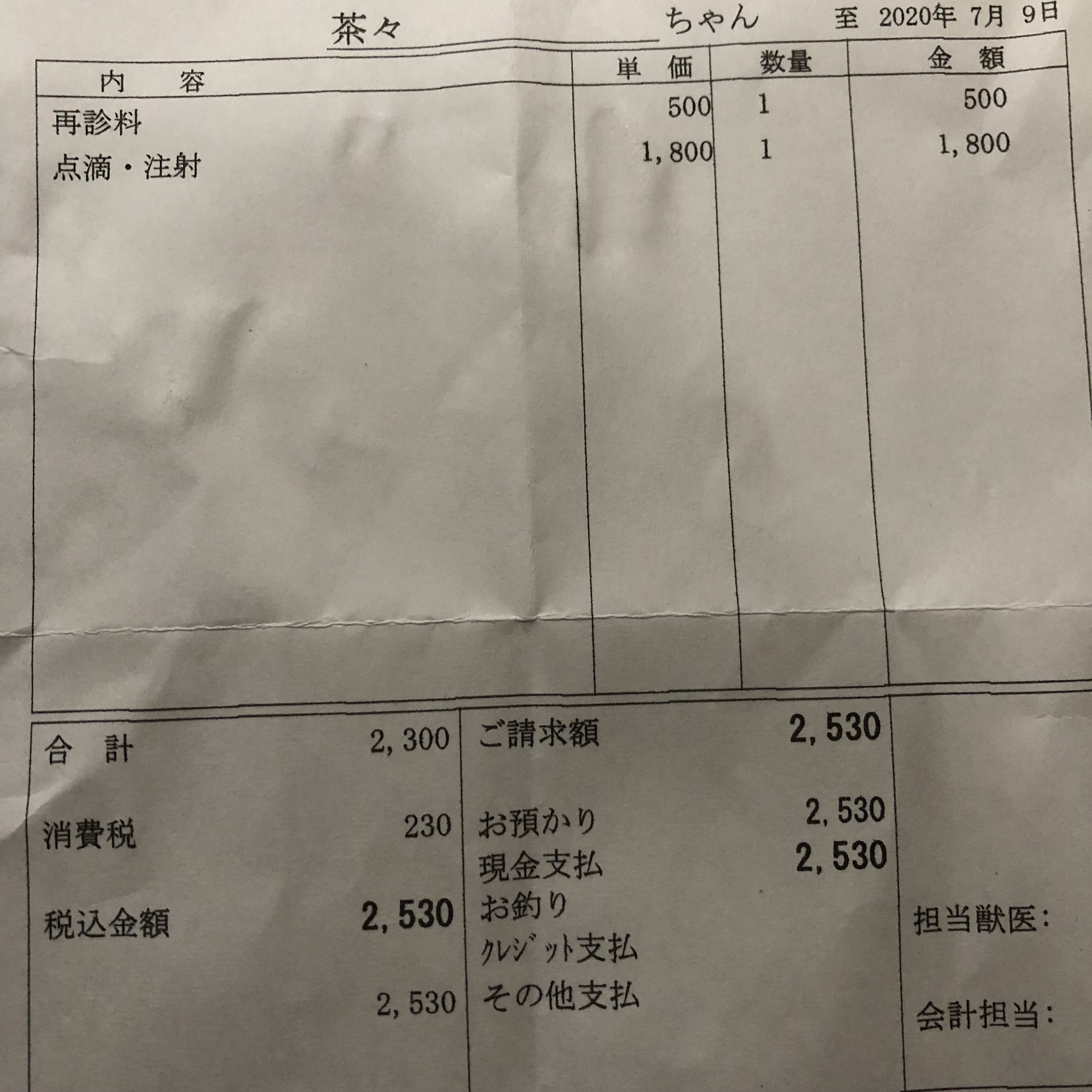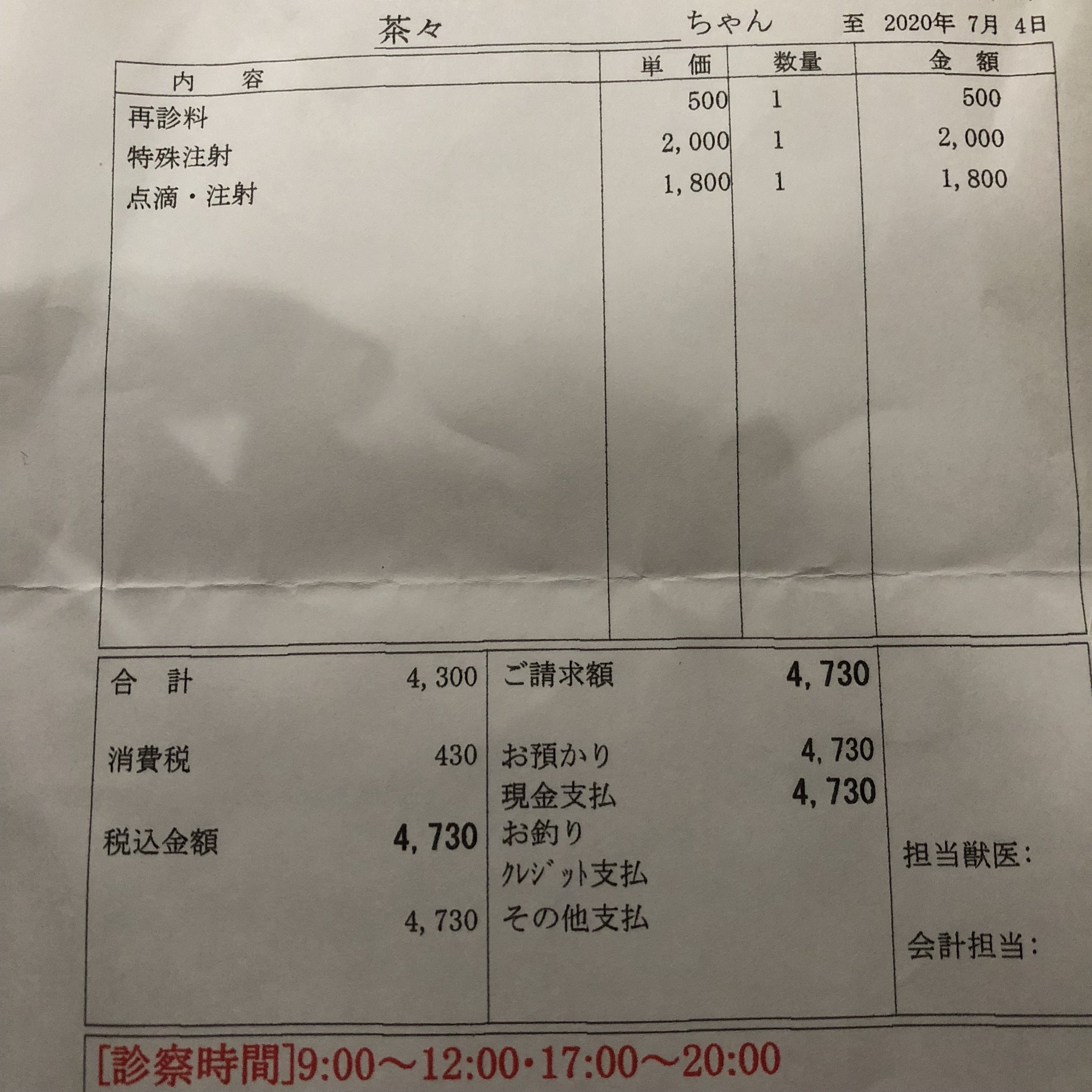 茶々の治療のご報告です